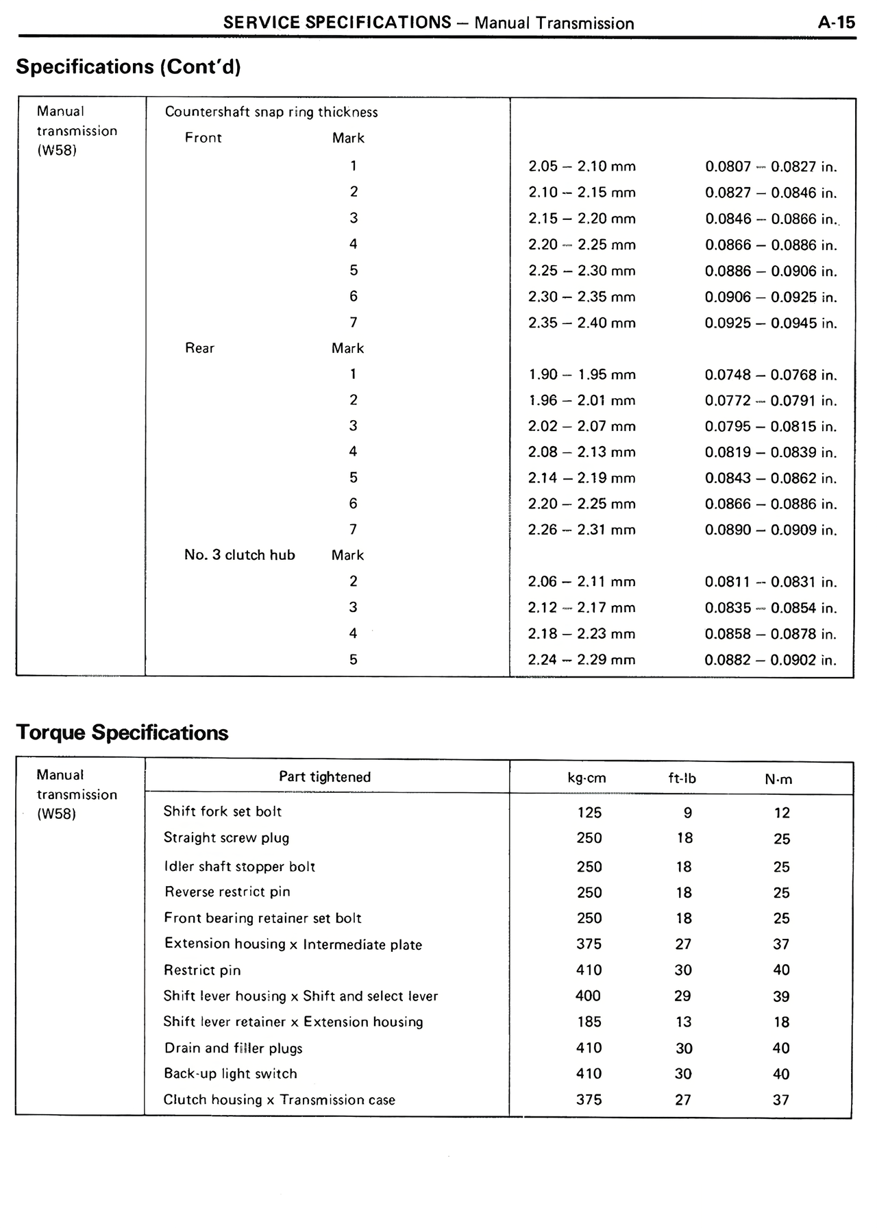 transmission Part tightened kg·cm ft·lb N·m