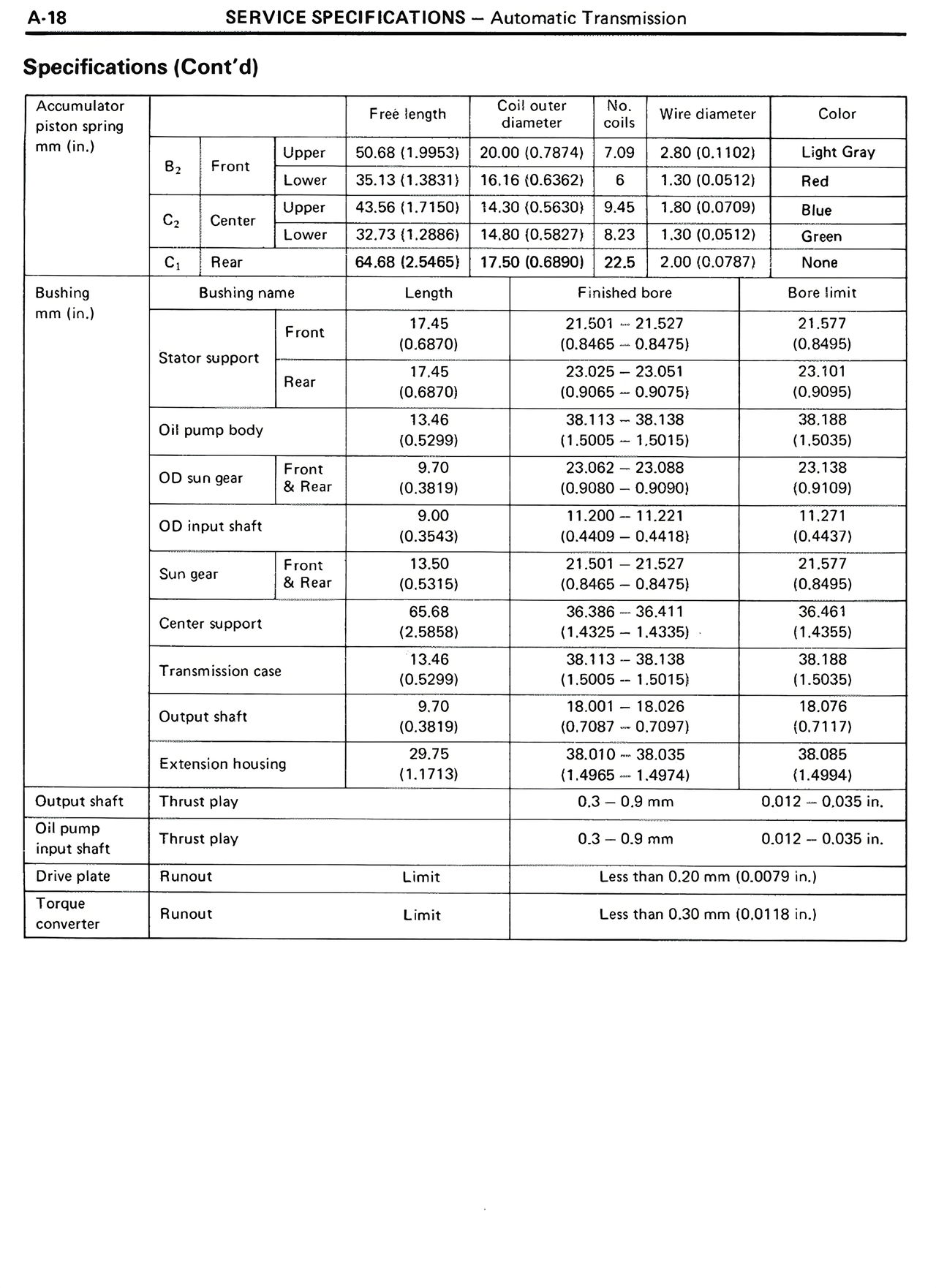 OD sun gear Front & Rear 9.70 (0.3819) 23.082 - 23.088 (0.9080 - 0.9090) 23.138 (0.9109)