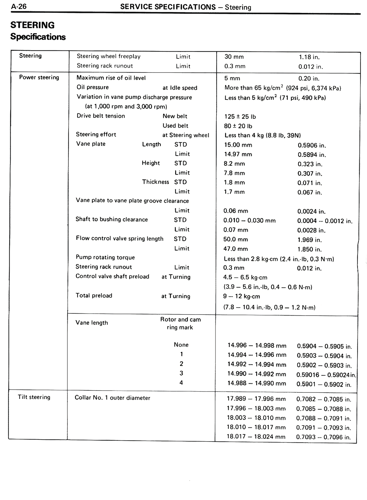 Variation in vane pump discharge pressure Less than 5 kg/cm² (71 psi, 490 kPa)