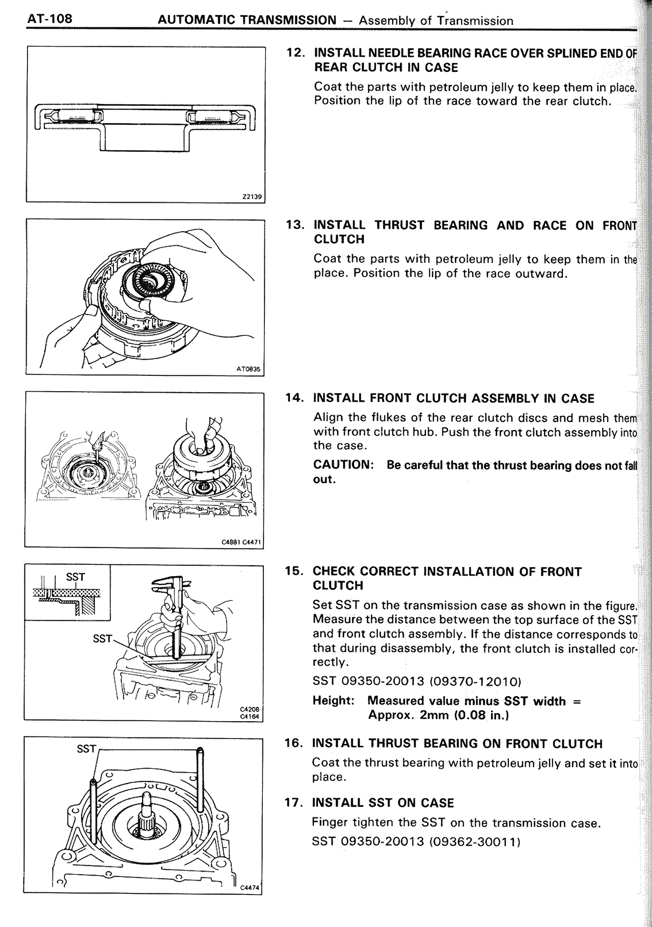 12. INSTALL NEEDLE BEARING RACE OVER SPLINED END OF REAR CLUTCH IN CASE