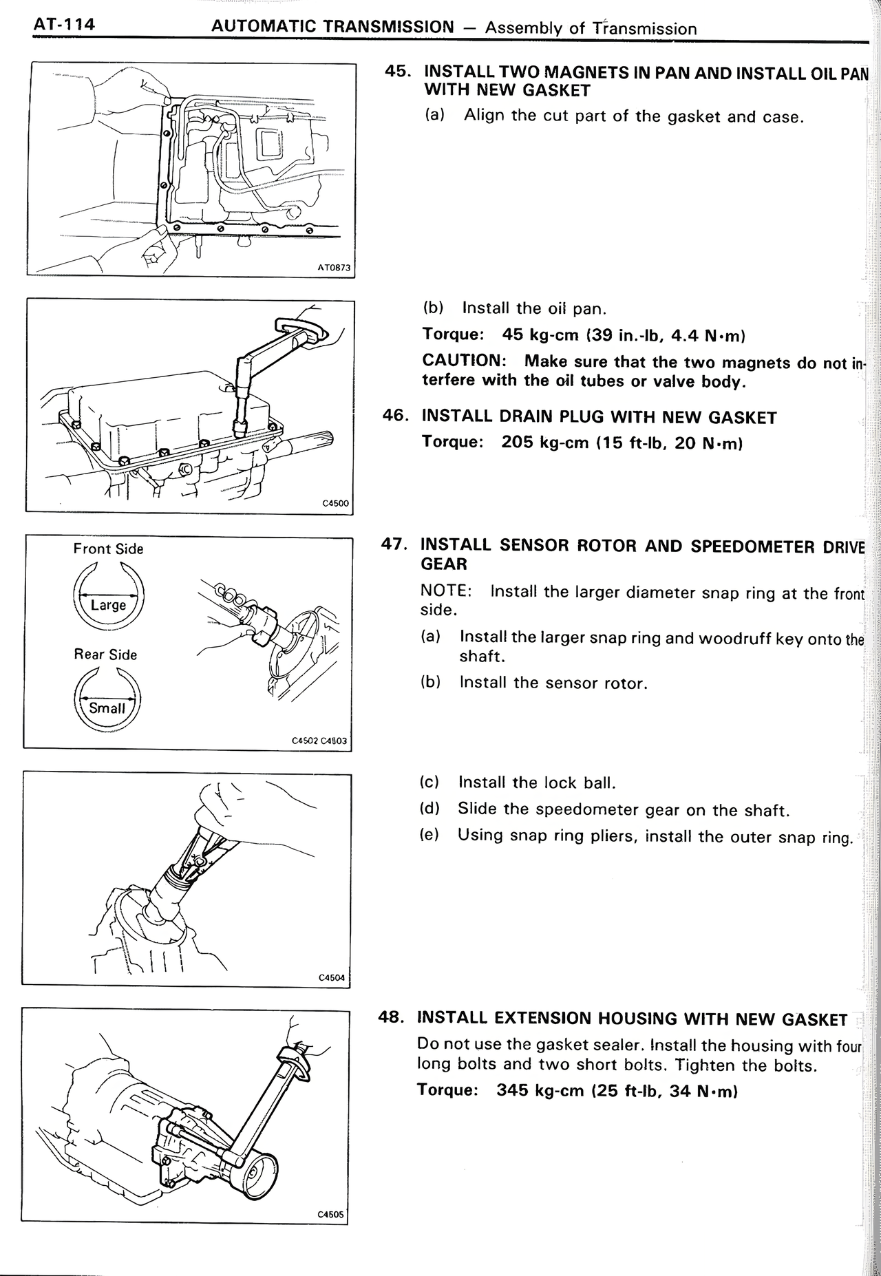45. INSTALL TWO MAGNETS IN PAN AND INSTALL OIL PAN WITH NEW GASKET