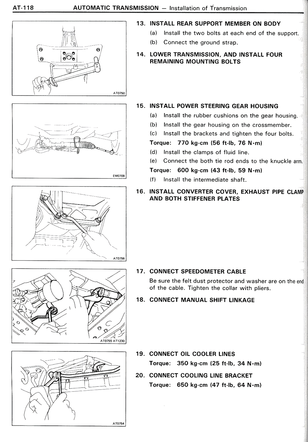 AT-118 AUTOMATIC TRANSMISSION — Installation of Transmission