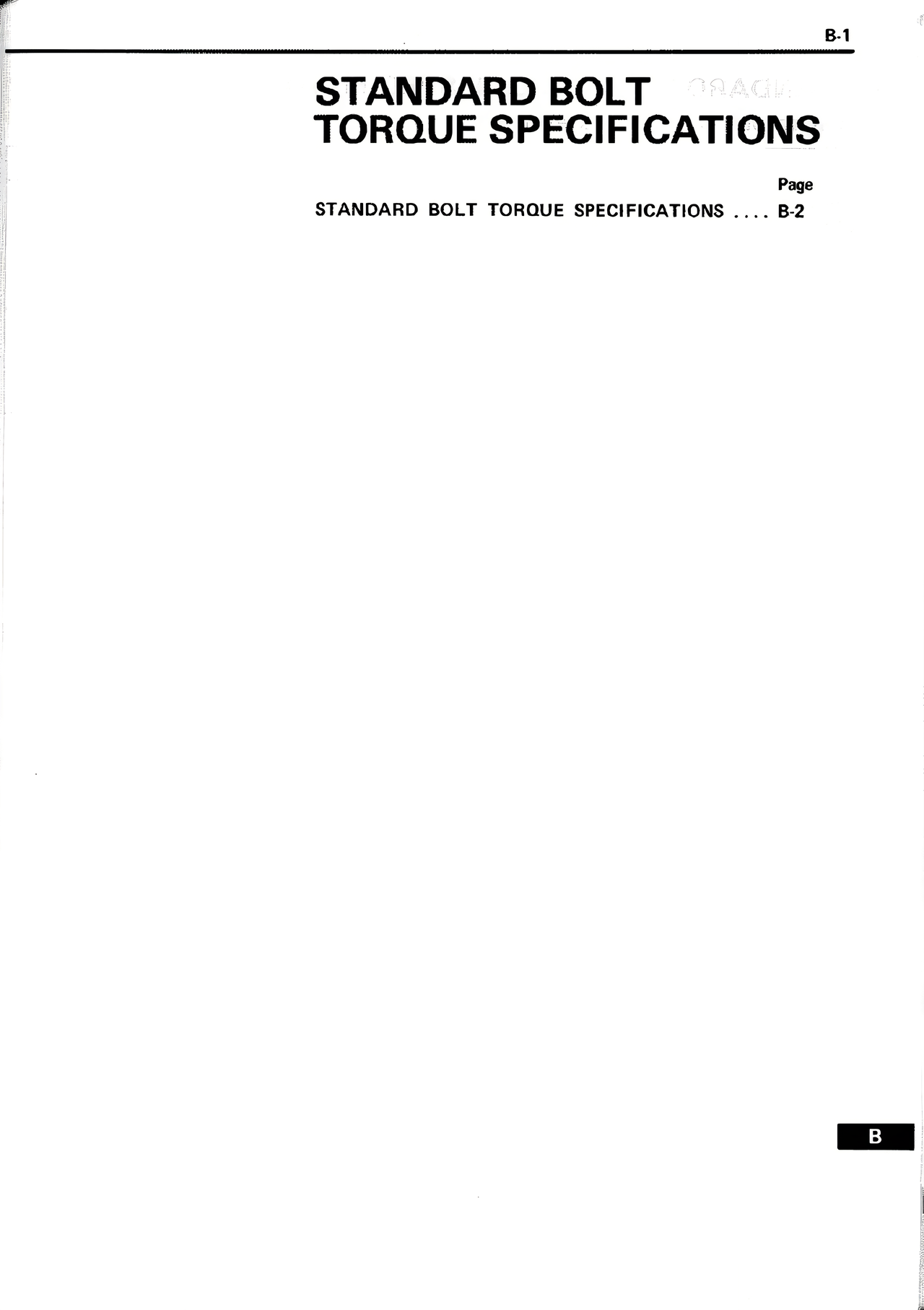 STANDARD BOLT TORQUE SPECIFICATIONS Page STANDARD BOLT TORQUE SPECIFICATIONS .... B-2
