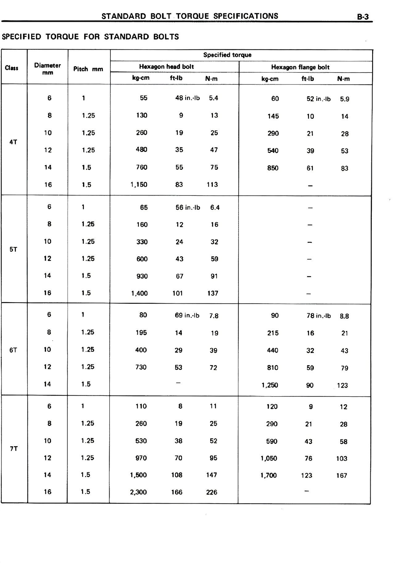 | | | kg-cm | ft-lb | N·m | kg-cm | ft-lb | N·m