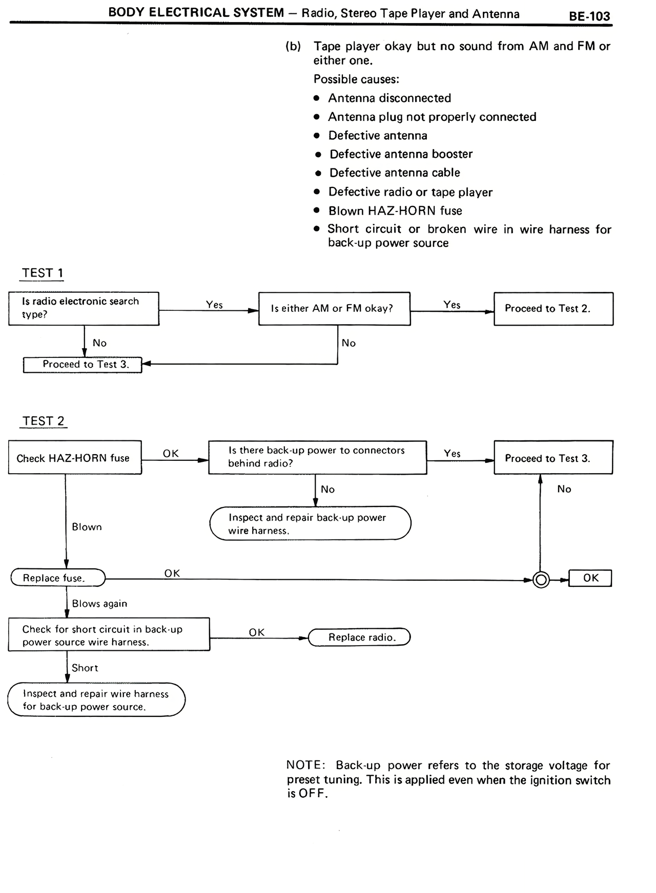 BODY ELECTRICAL SYSTEM — Radio, Stereo Tape Player and Antenna BE-103