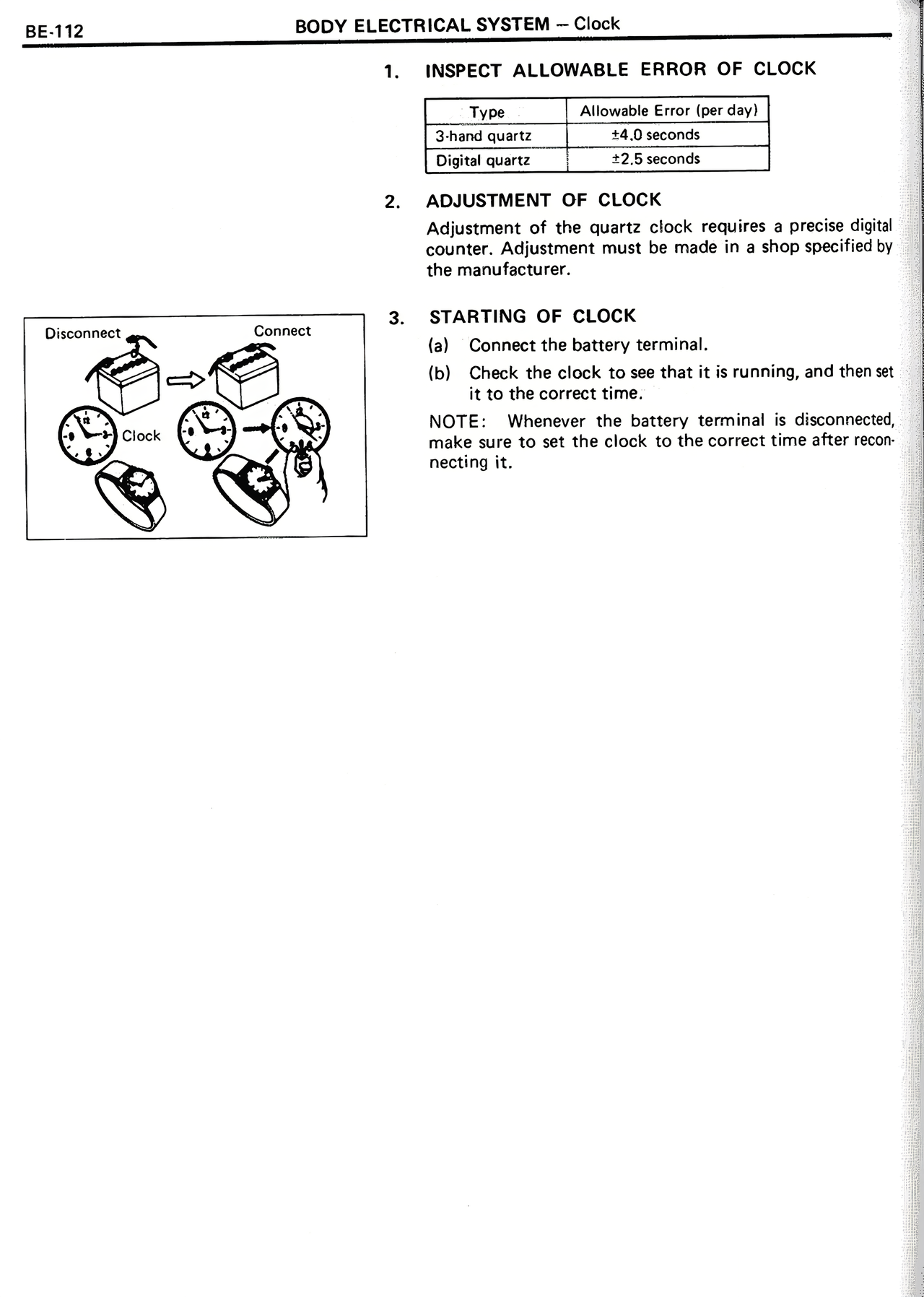 NOTE: Whenever the battery terminal is disconnected, make sure to set the clock to the correct time after reconnecting it.