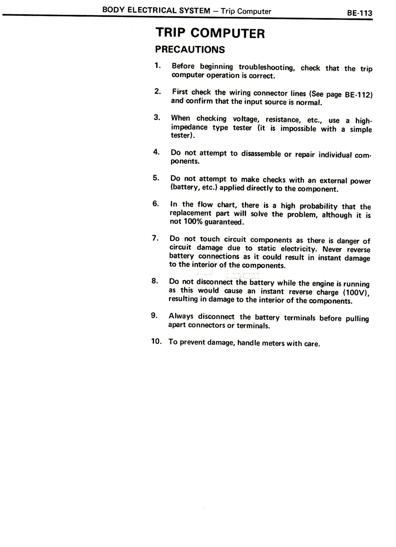 1. Before beginning troubleshooting, check that the trip computer operation is correct.