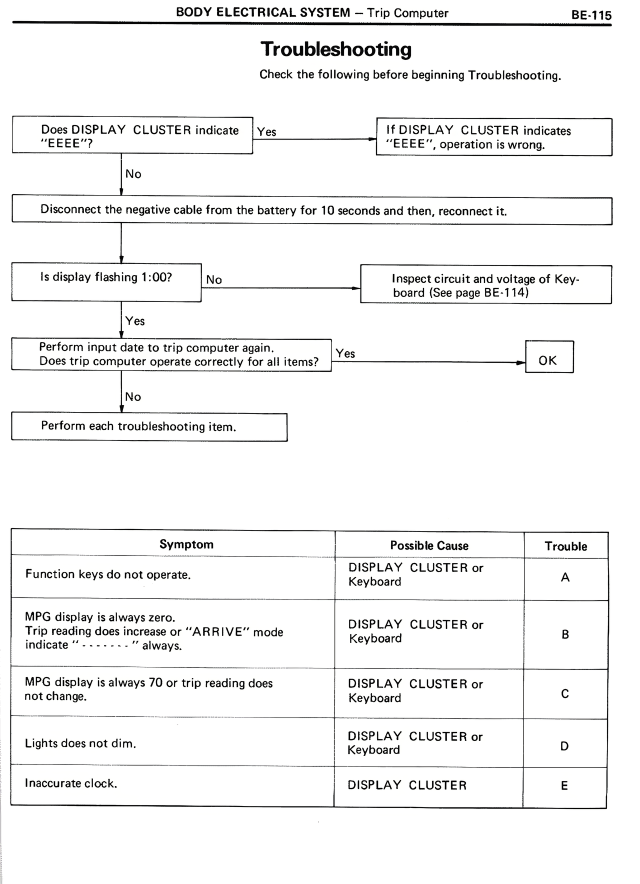 No → Inspect circuit and voltage of Keyboard (See page BE-114)