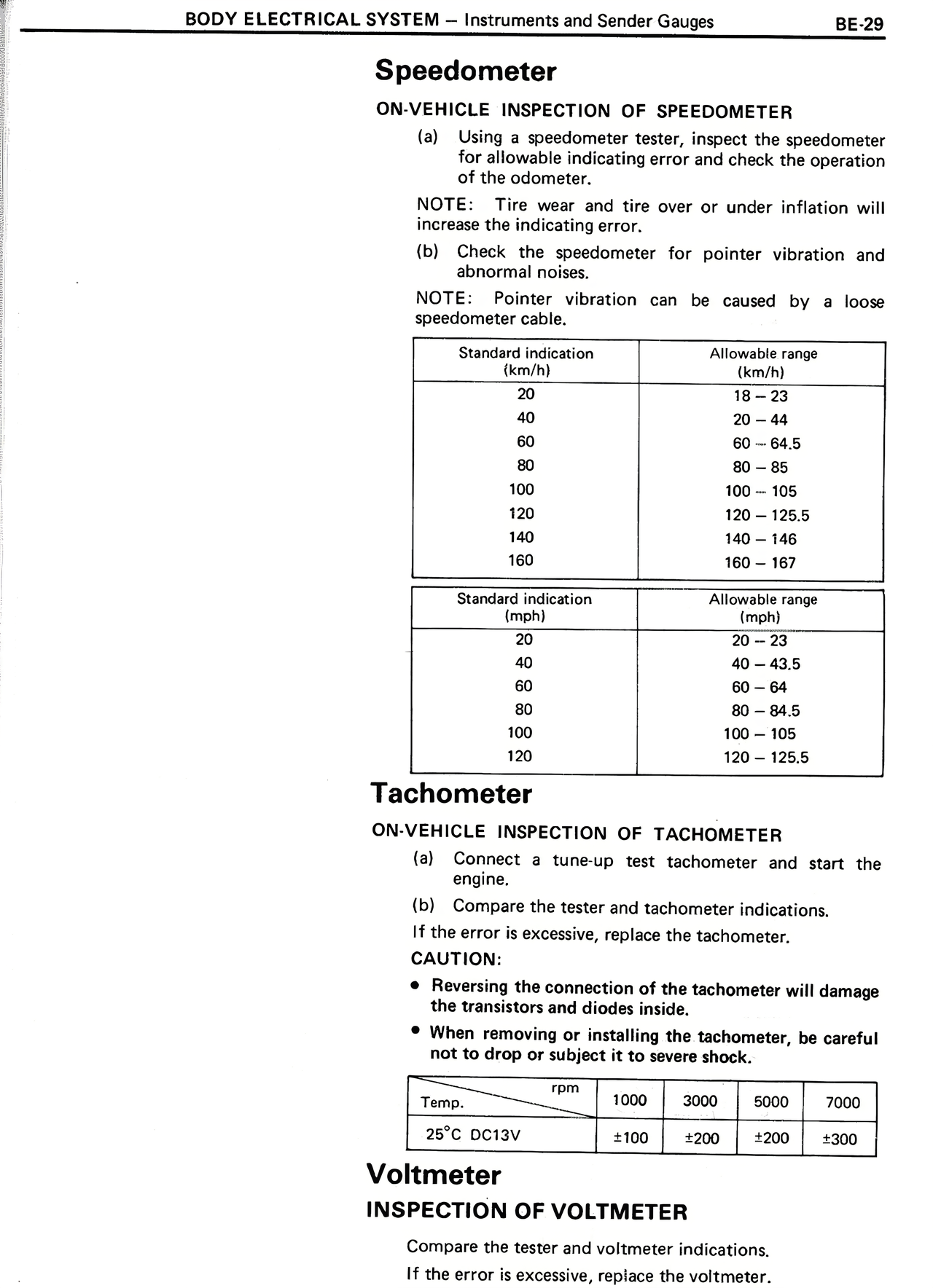 ON-VEHICLE INSPECTION OF TACHOMETER