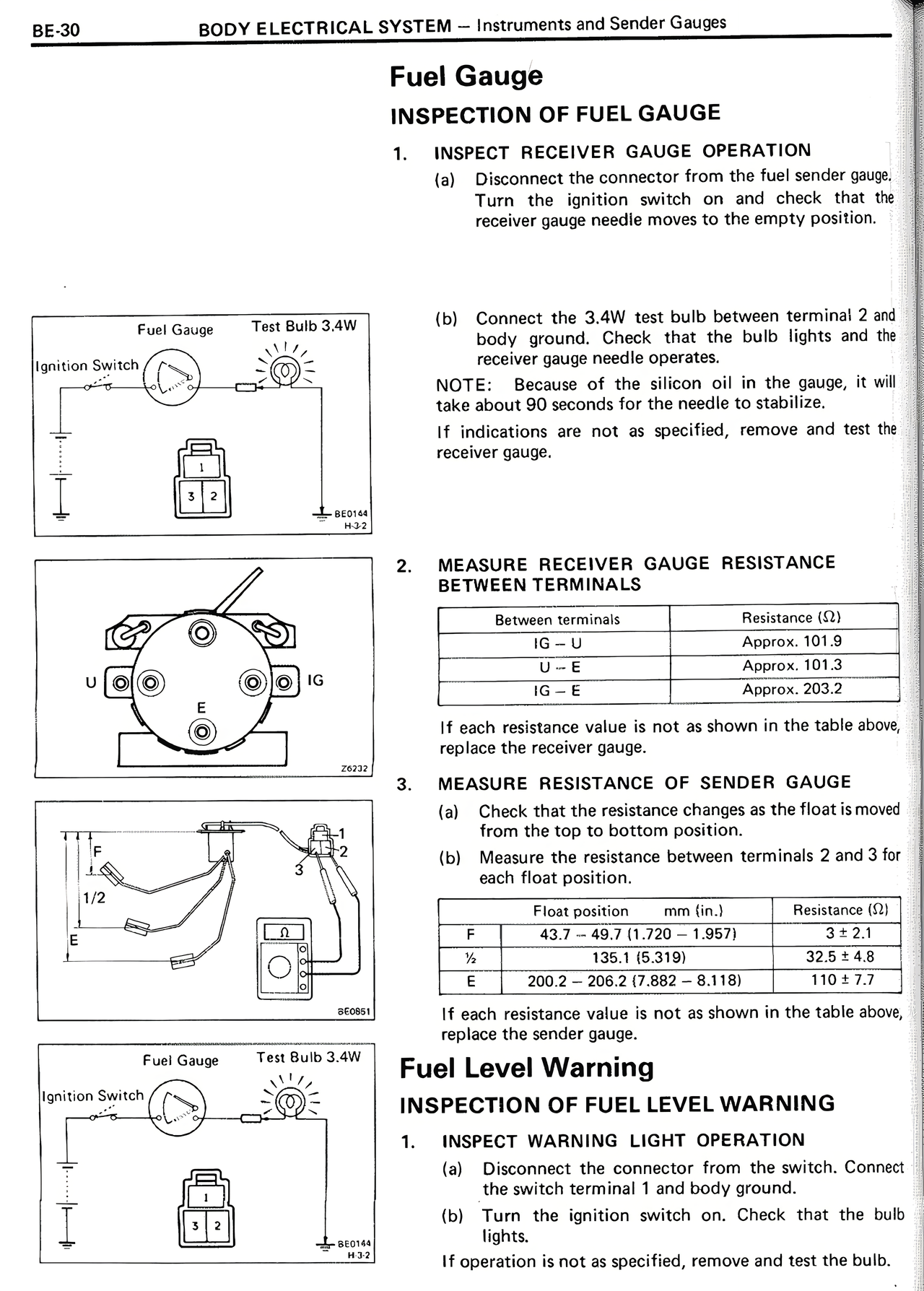 If each resistance value is not as shown in the table above, replace the sender gauge.