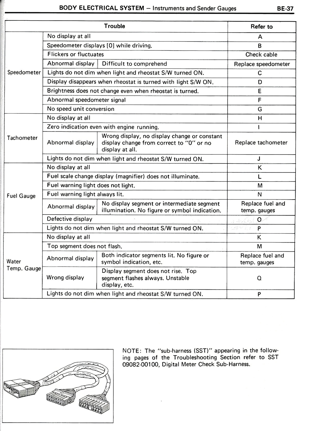 NOTE: The "sub-harness (SST)" appearing in the following pages of the Troubleshooting Section refer to SST 09082-00100, Digital Meter Check Sub-Harness.