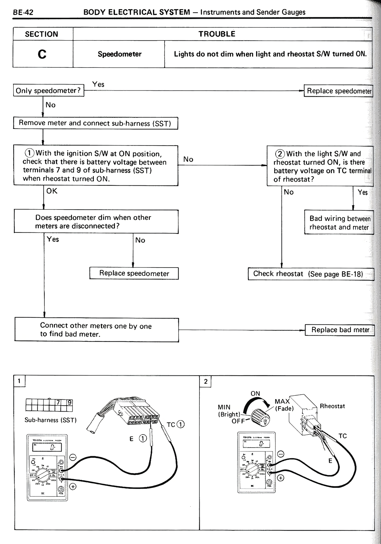 C Speedometer Lights do not dim when light and rheostat S/W turned ON.