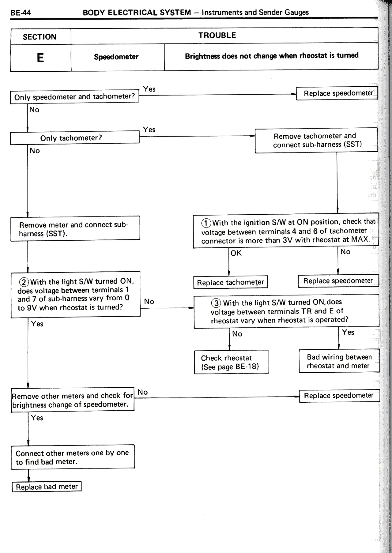E Speedometer Brightness does not change when rheostat is turned