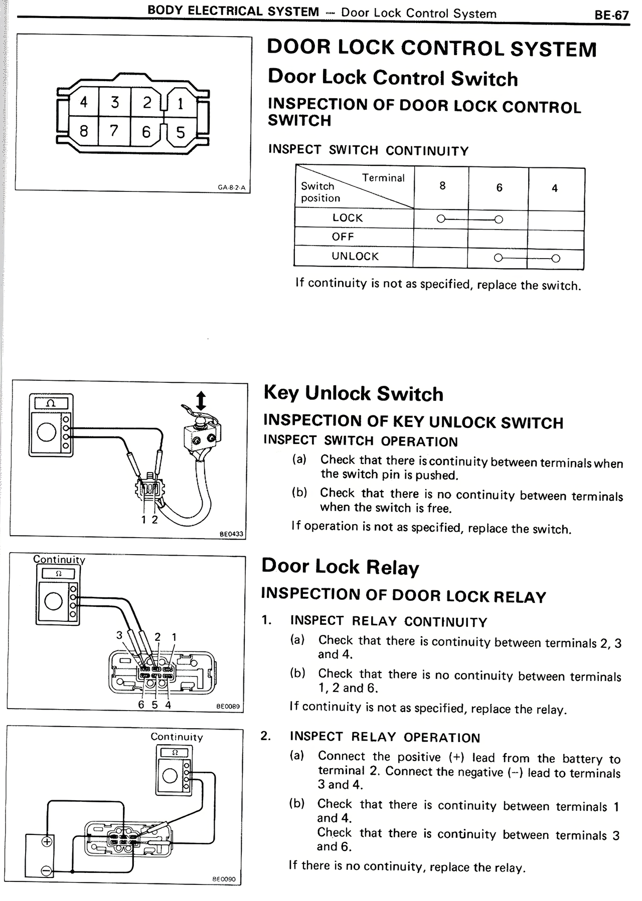 INSPECTION OF DOOR LOCK RELAY