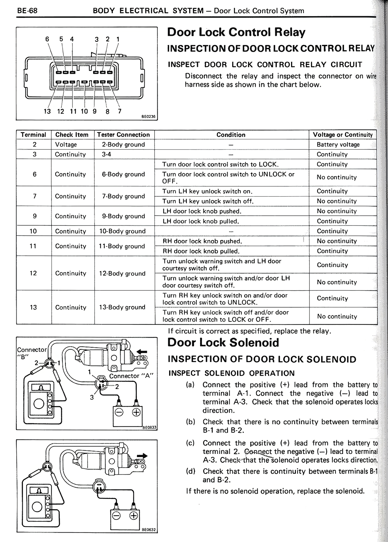 INSPECTION OF DOOR LOCK CONTROL RELAY