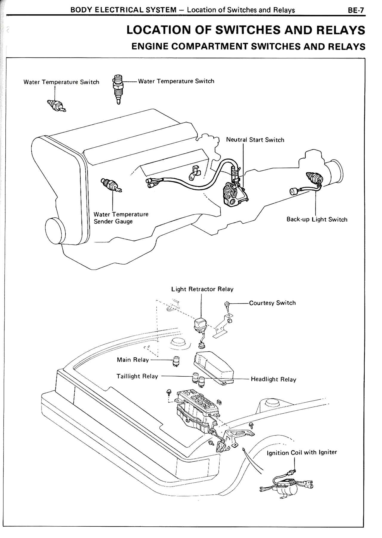 BODY ELECTRICAL SYSTEM — Location of Switches and Relays BE-7