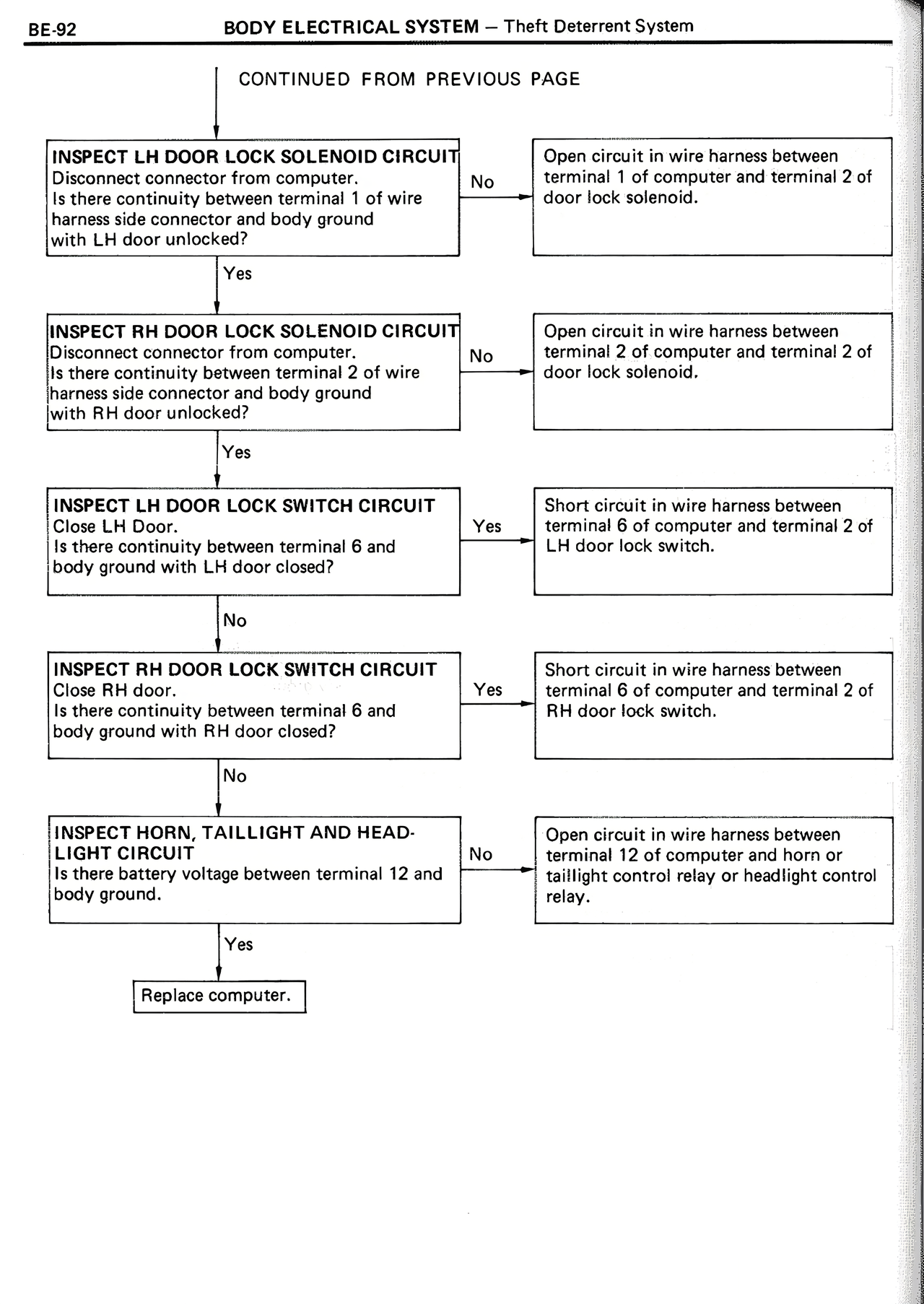 No → Open circuit in wire harness between terminal 12 of computer and horn or taillight control relay or headlight control relay.