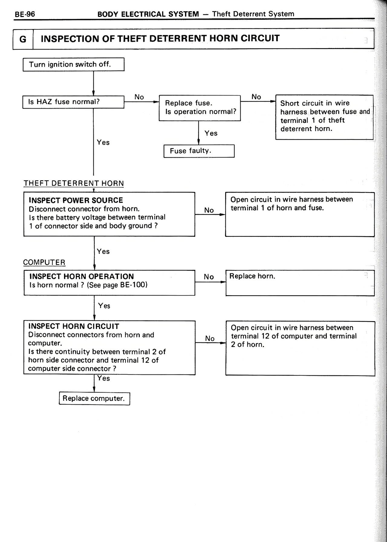 INSPECTION OF THEFT DETERRENT HORN CIRCUIT