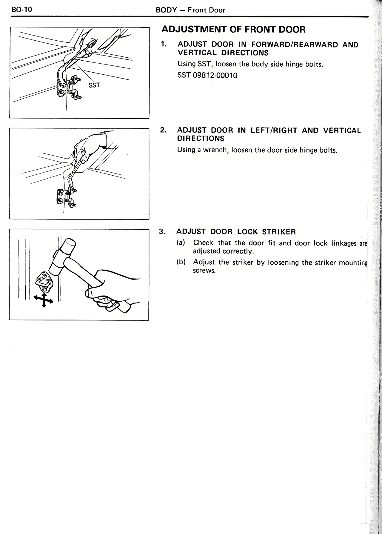 1. ADJUST DOOR IN FORWARD/REARWARD AND VERTICAL DIRECTIONS