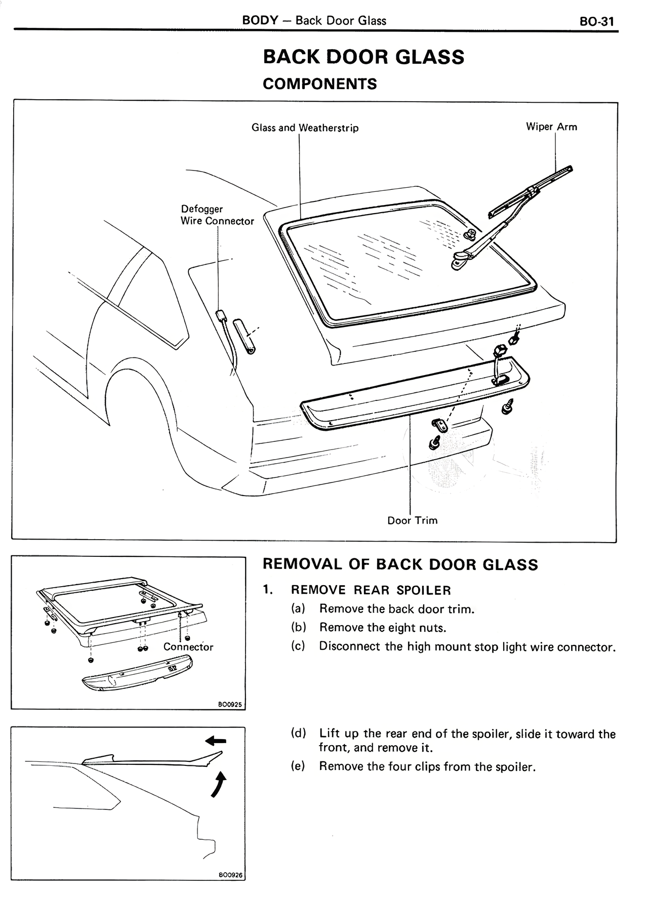 (d) Lift up the rear end of the spoiler, slide it toward the front, and remove it.