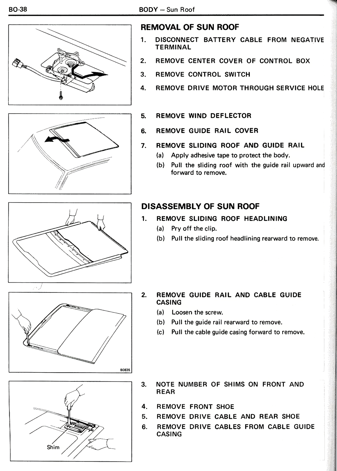 DISASSEMBLY OF SUN ROOF
