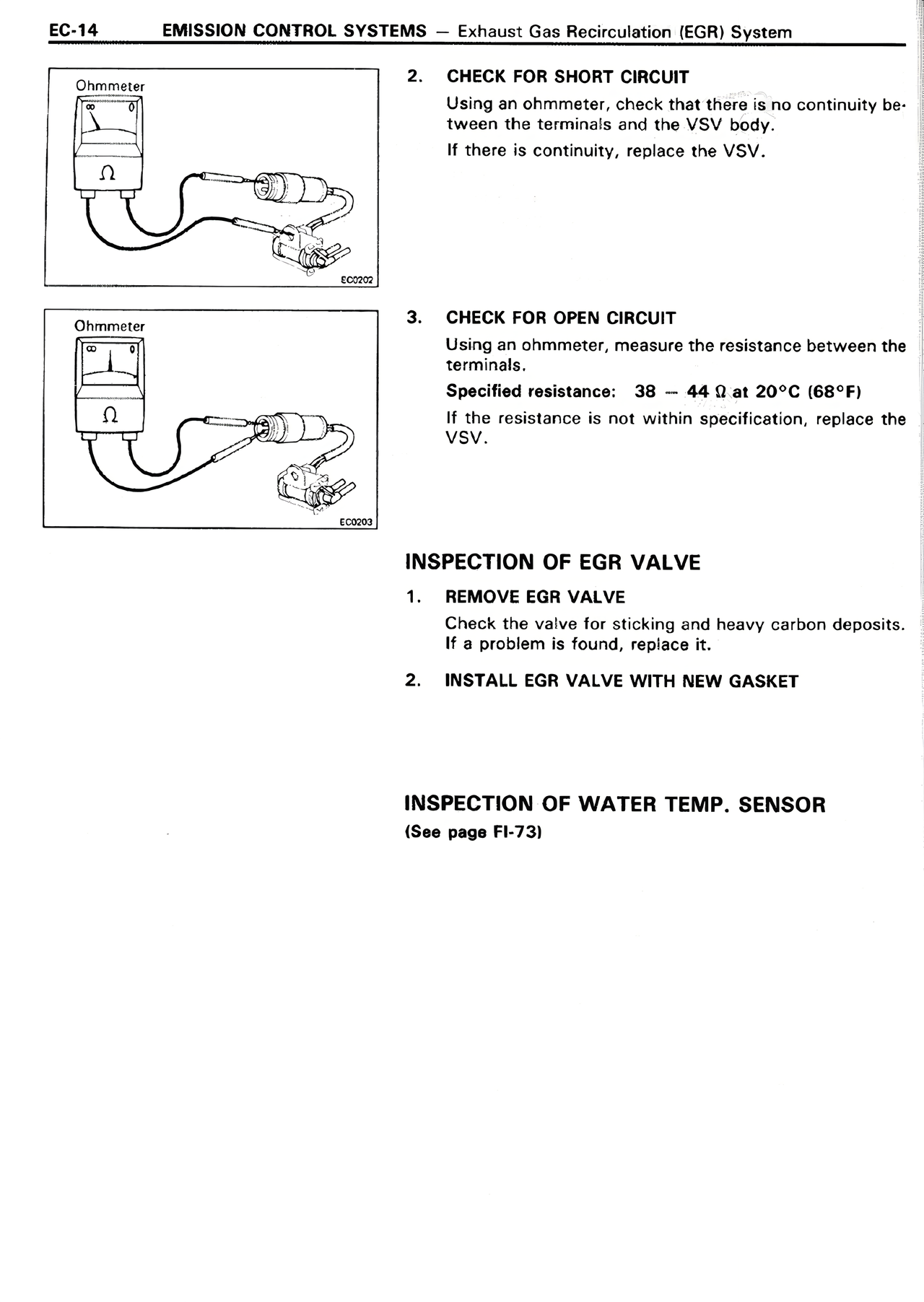 INSPECTION OF WATER TEMP. SENSOR