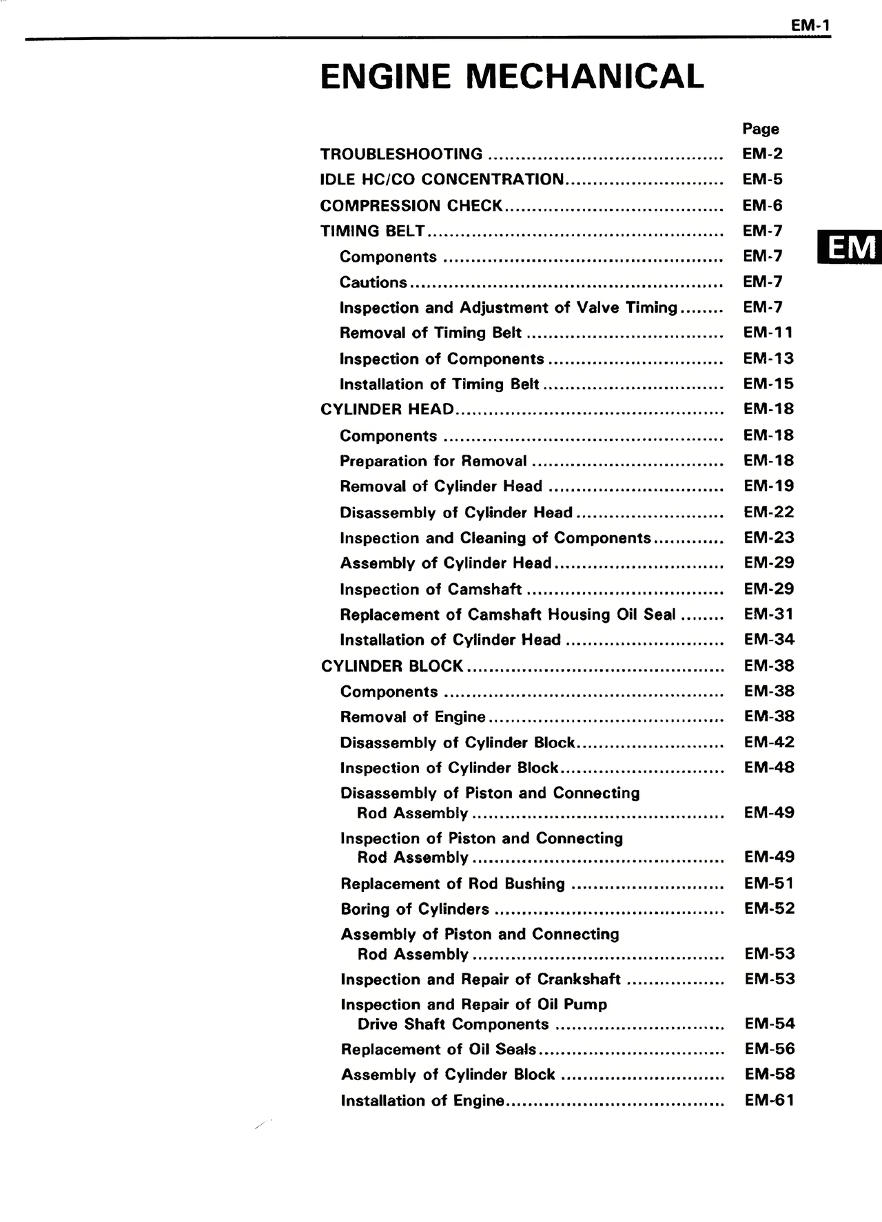 Disassembly of Cylinder Block......................... EM-42