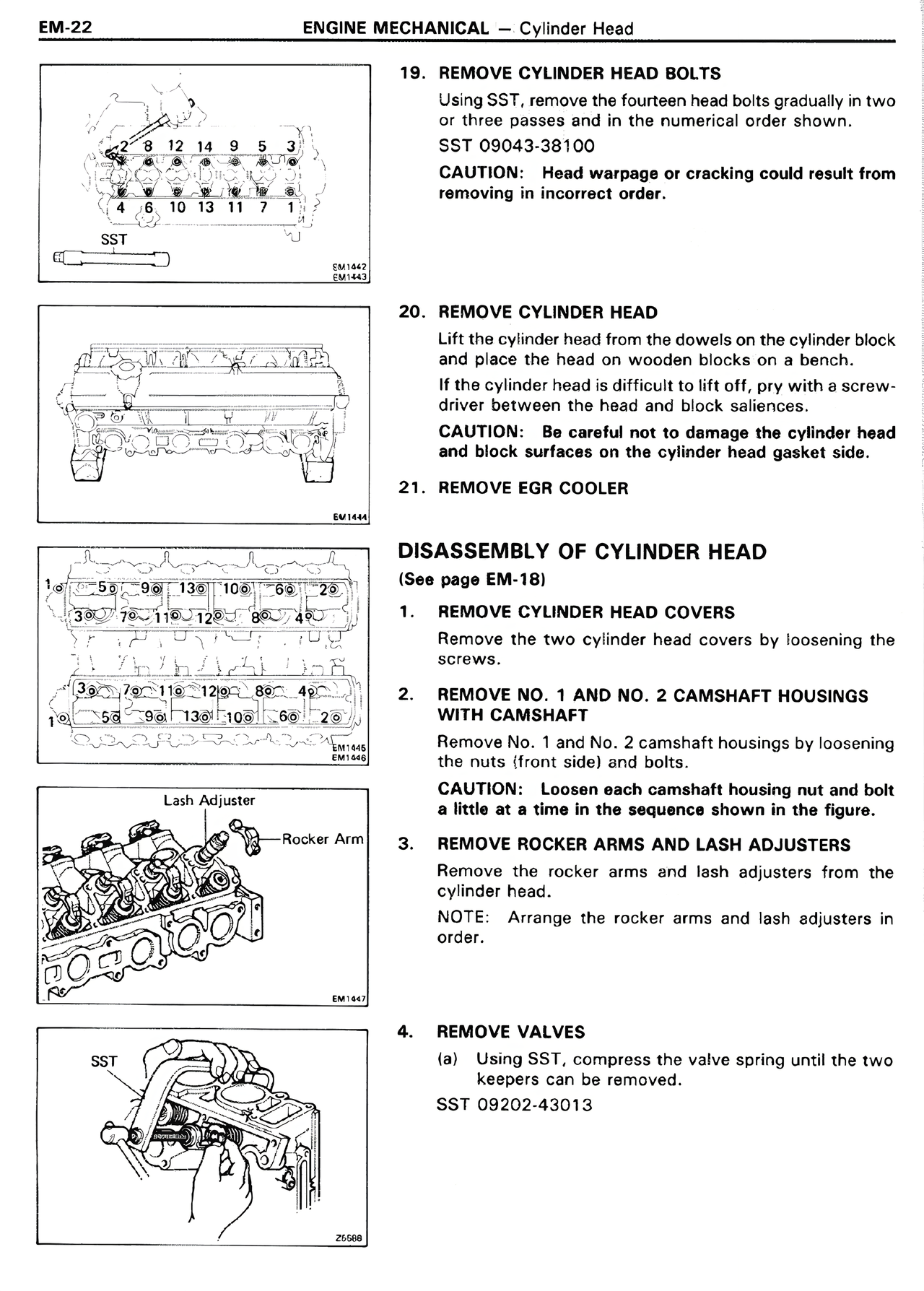 Using SST, remove the fourteen head bolts gradually in two or three passes and in the numerical order shown.