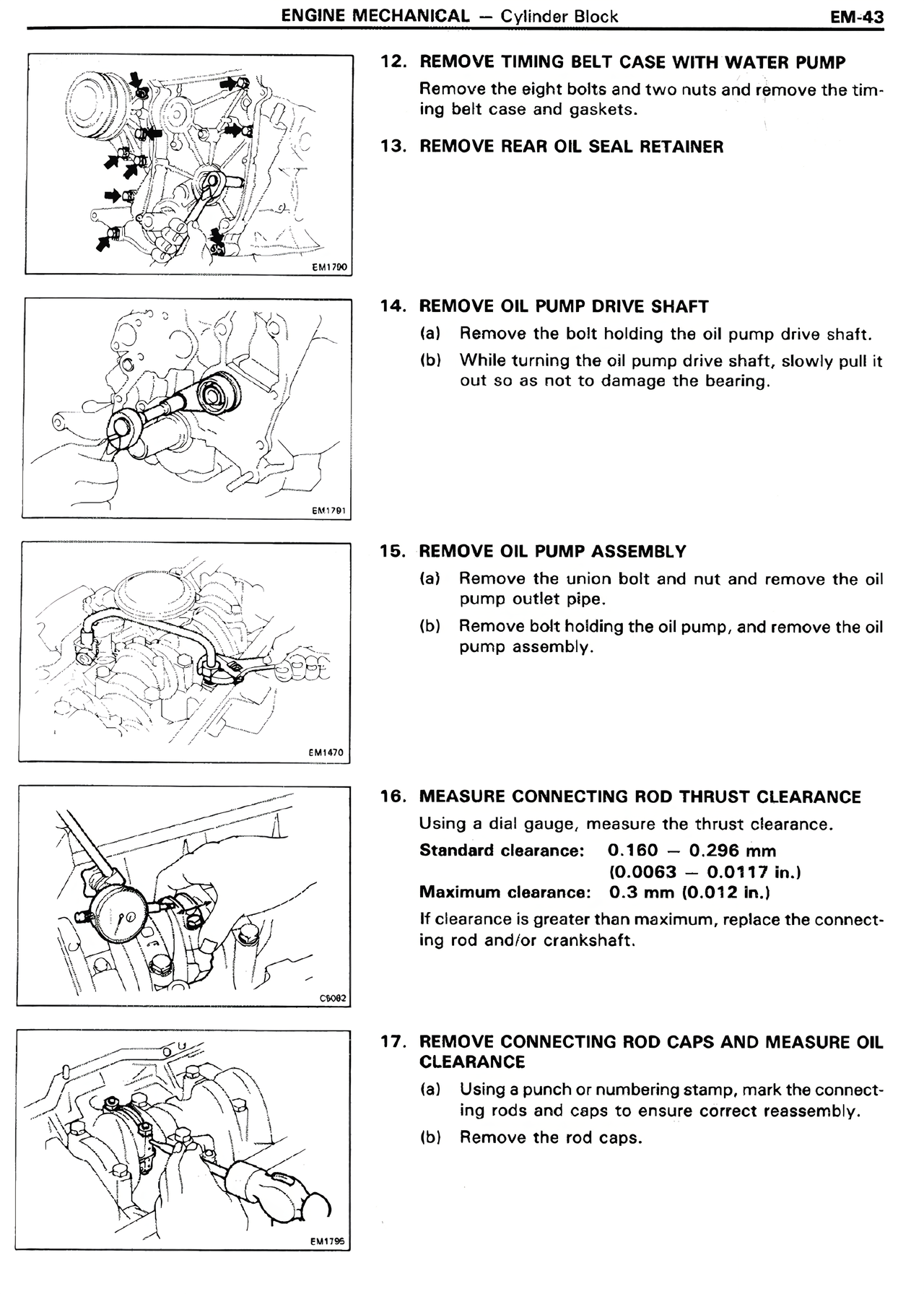 17. REMOVE CONNECTING ROD CAPS AND MEASURE OIL CLEARANCE