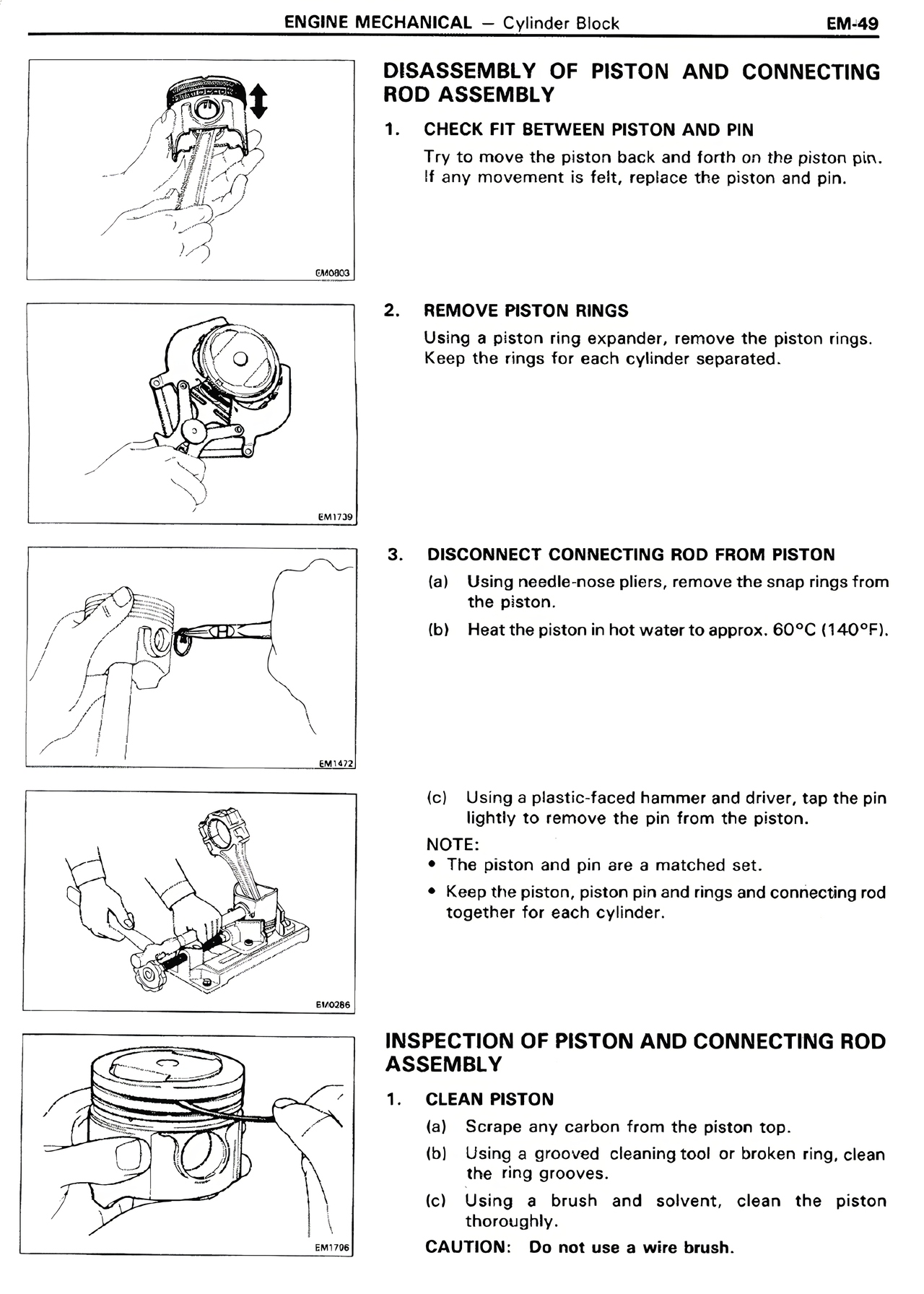 • Keep the piston, piston pin and rings and connecting rod together for each cylinder.