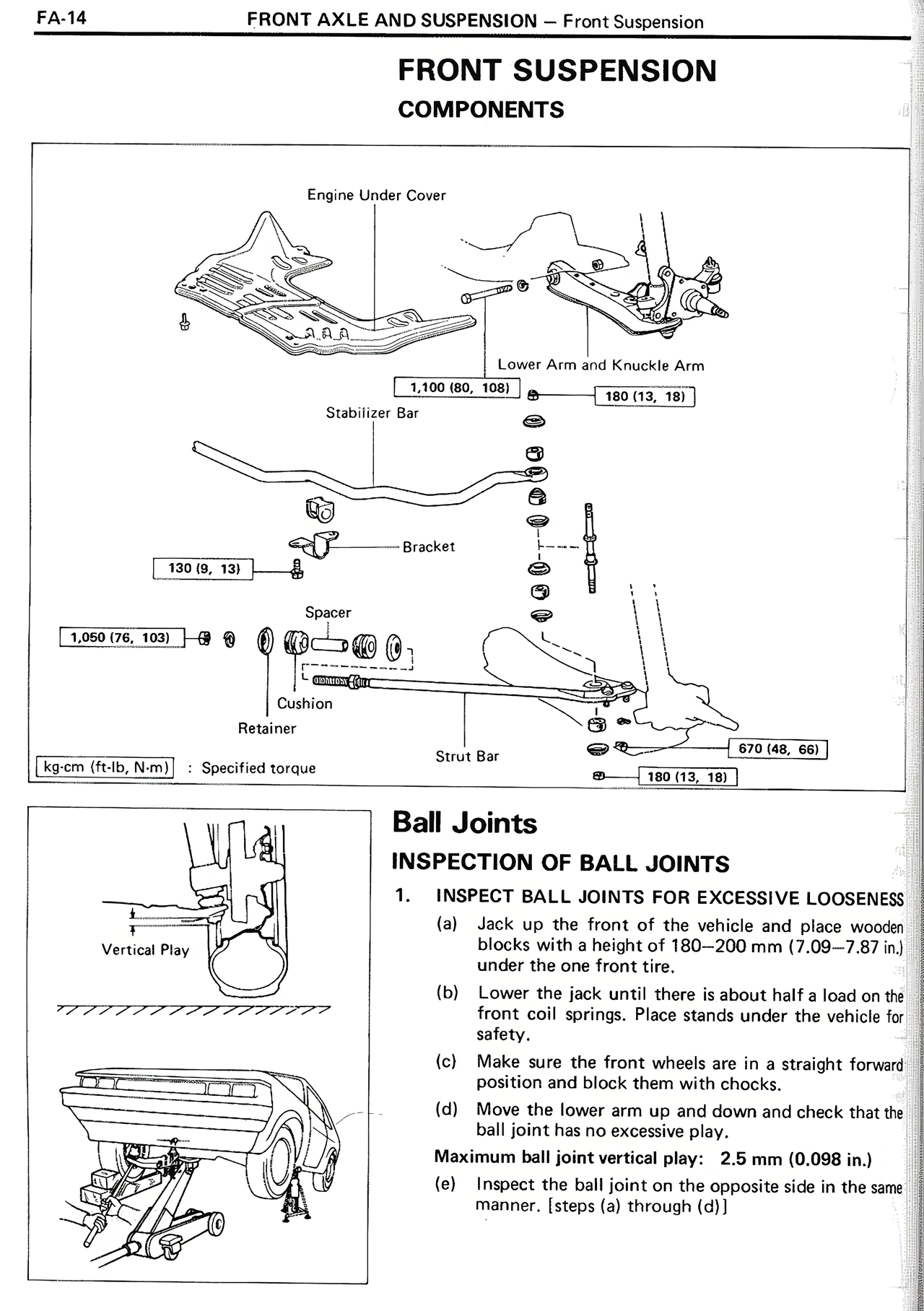 Maximum ball joint vertical play: 2.5 mm (0.098 in.)