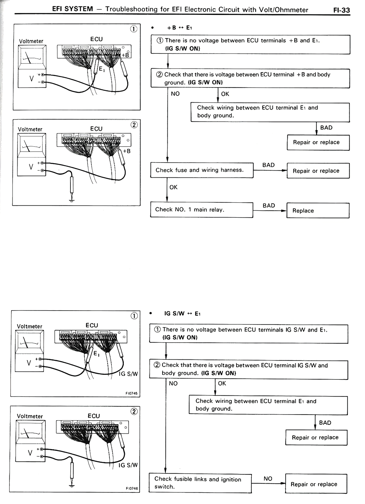 EFI SYSTEM — Troubleshooting for EFI Electronic Circuit with Volt/Ohmmeter FI-33
