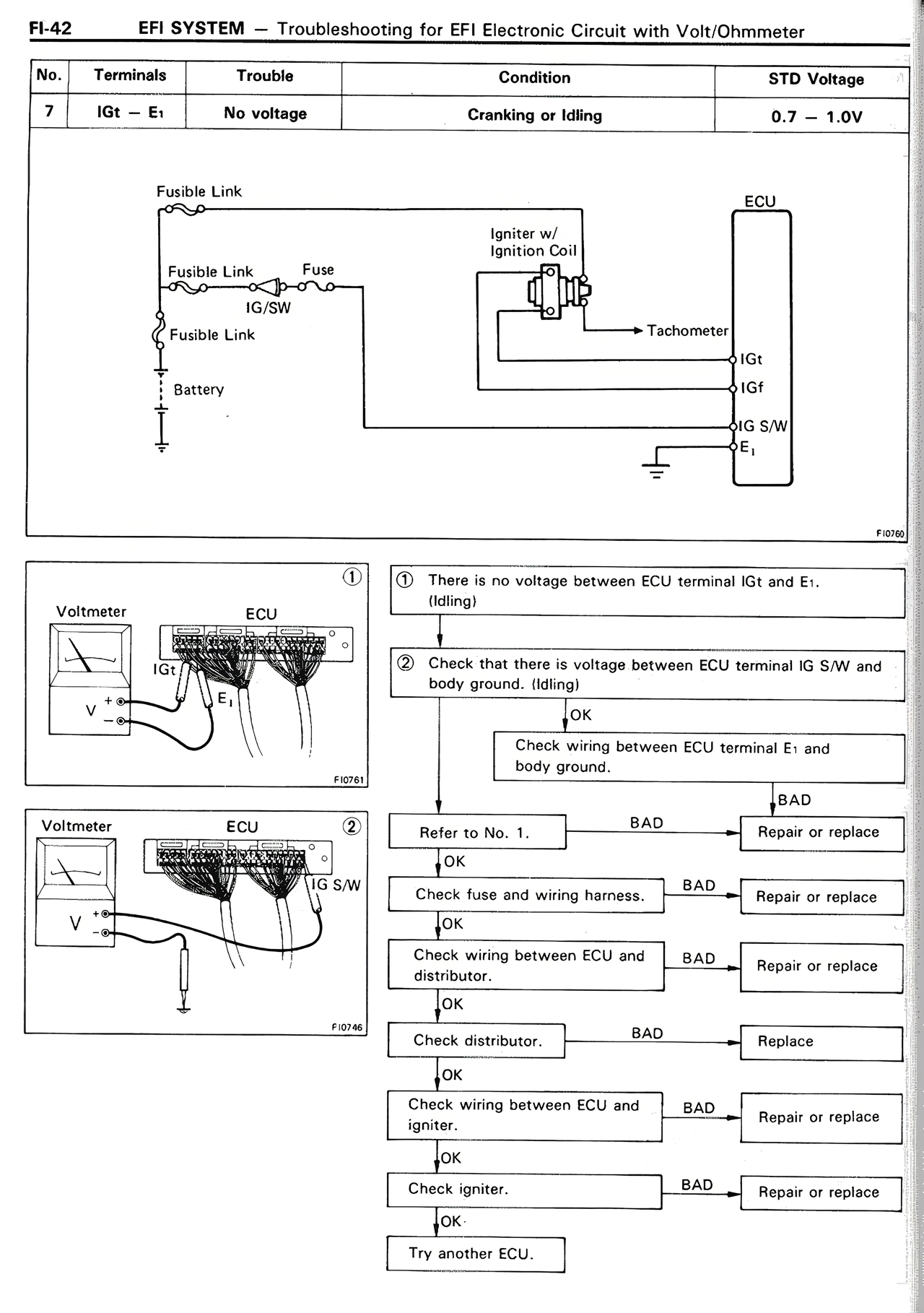 7 | IGt - E₁ | No voltage | Cranking or idling | 0.7 - 1.0V