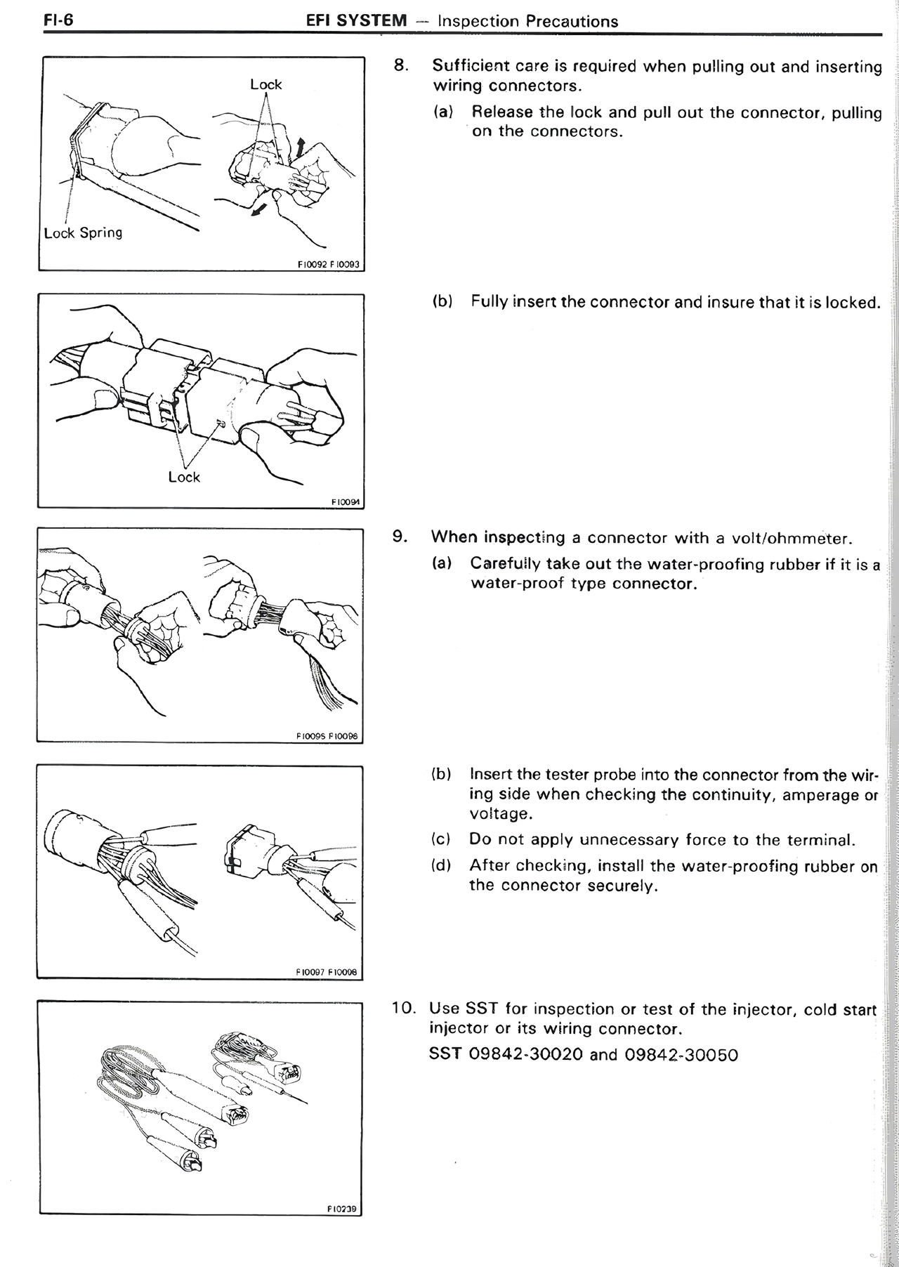 10. Use SST for inspection or test of the injector, cold start injector or its wiring connector.