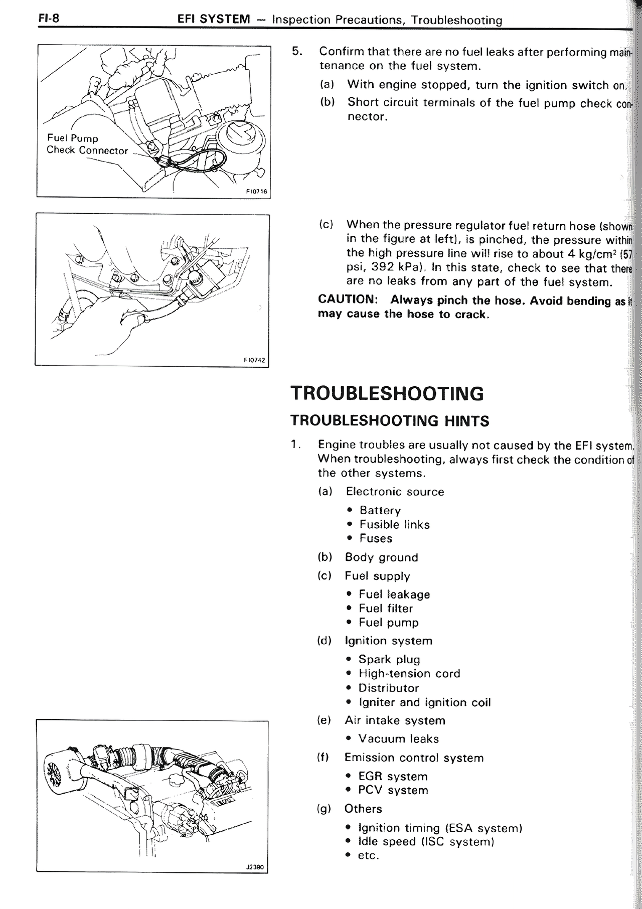 1. Engine troubles are usually not caused by the EFI system. When troubleshooting, always first check the condition of the other systems.