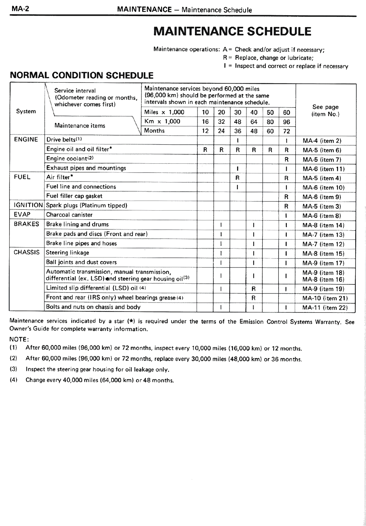 (2) After 60,000 miles (96,000 km) or 72 months, replace every 30,000 miles (48,000 km) or 36 months.