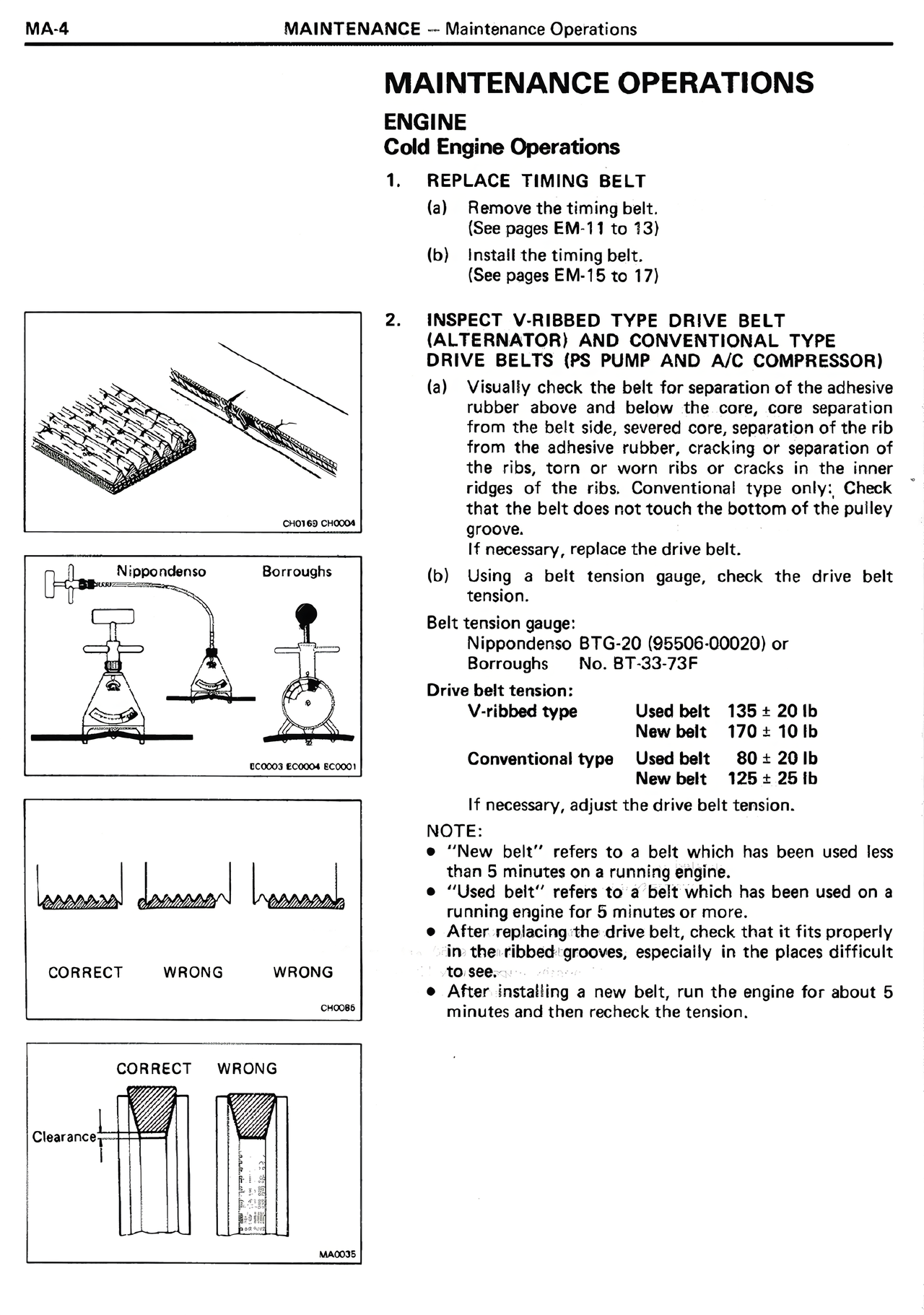 • "New belt" refers to a belt which has been used less than 5 minutes on a running engine.