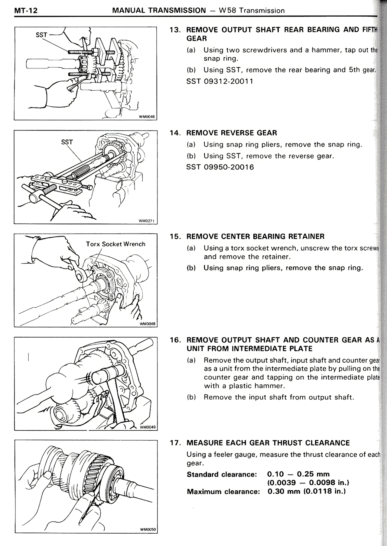 13. REMOVE OUTPUT SHAFT REAR BEARING AND FIFTH GEAR