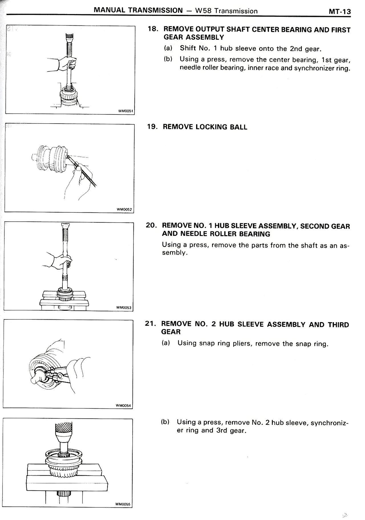 18. REMOVE OUTPUT SHAFT CENTER BEARING AND FIRST GEAR ASSEMBLY
