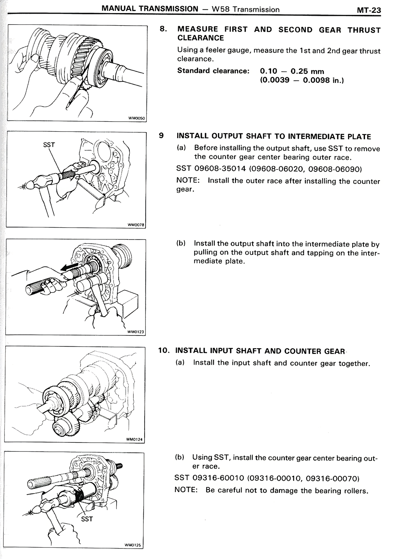 (a) Before installing the output shaft, use SST to remove the counter gear center bearing outer race.