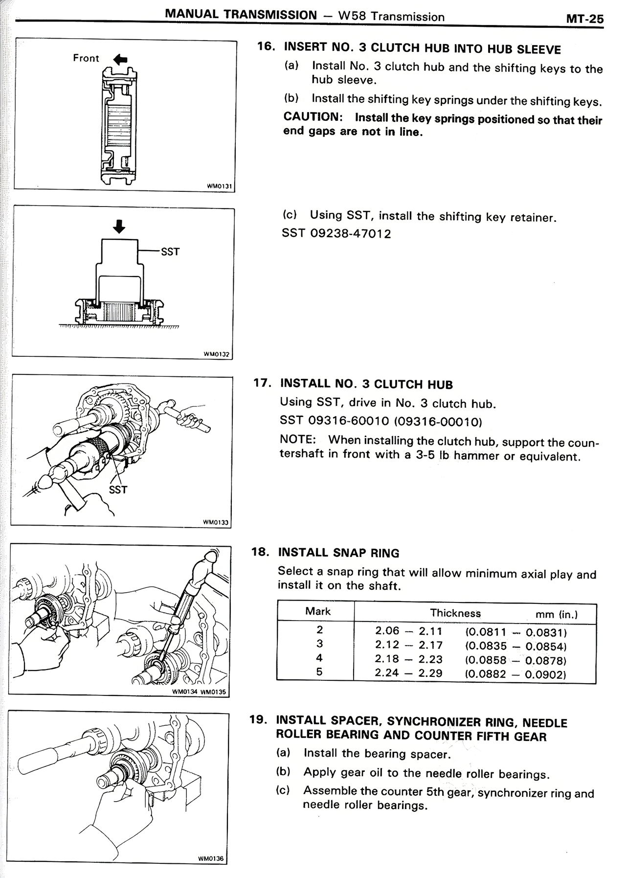 19. INSTALL SPACER, SYNCHRONIZER RING, NEEDLE ROLLER BEARING AND COUNTER FIFTH GEAR