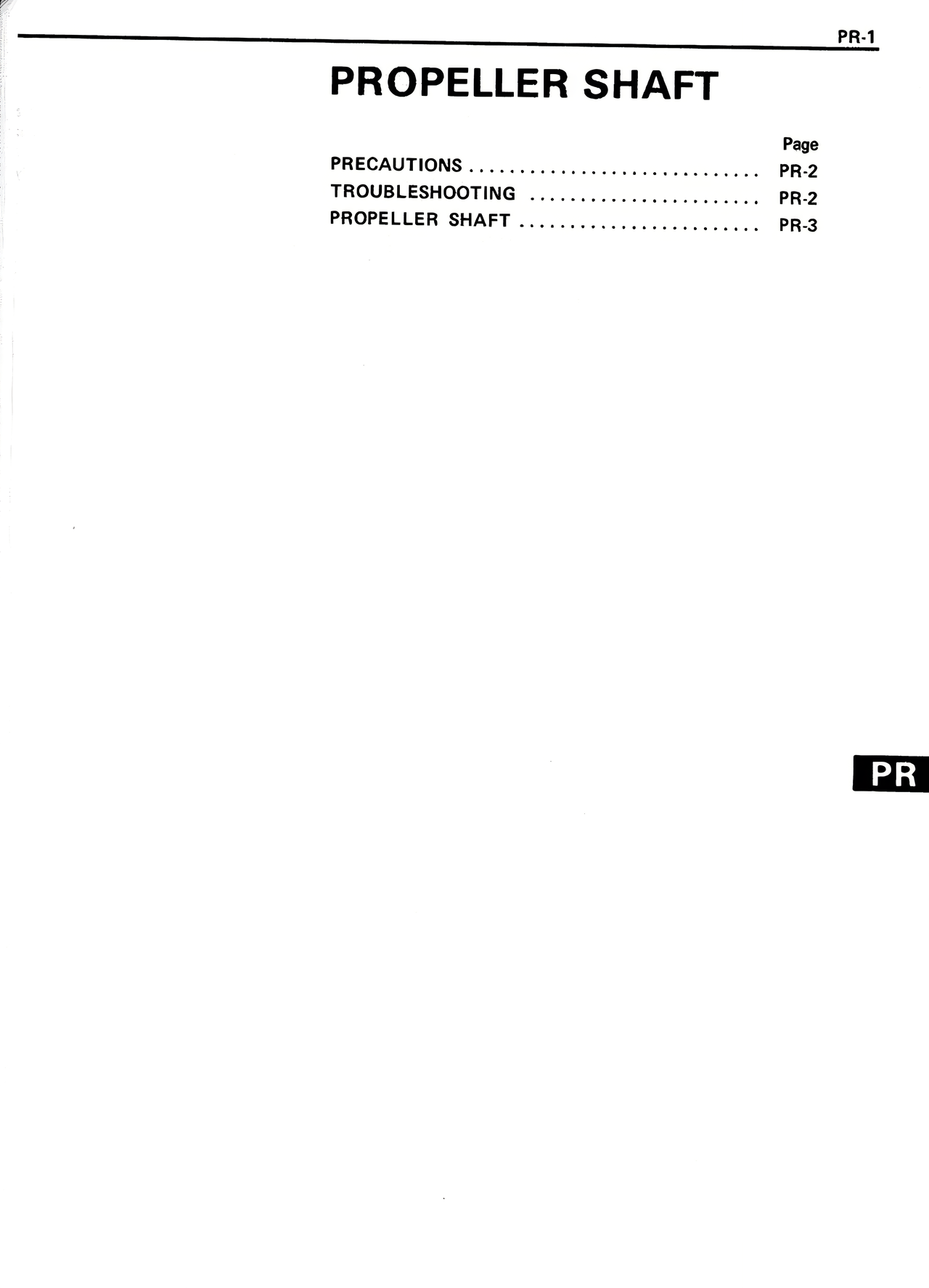 PROPELLER SHAFT PRECAUTIONS.......................... PR-2 TROUBLESHOOTING ..................... PR-2 PROPELLER SHAFT ..................... PR-3