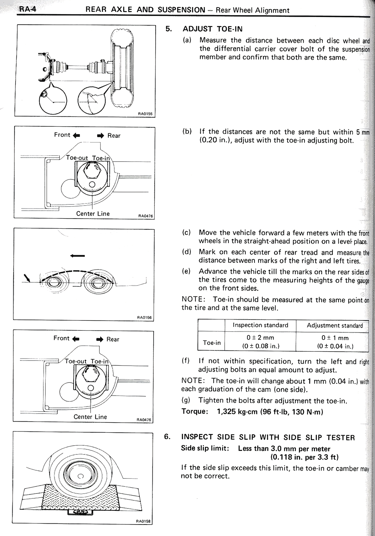 If the side slip exceeds this limit, the toe-in or camber may not be correct.