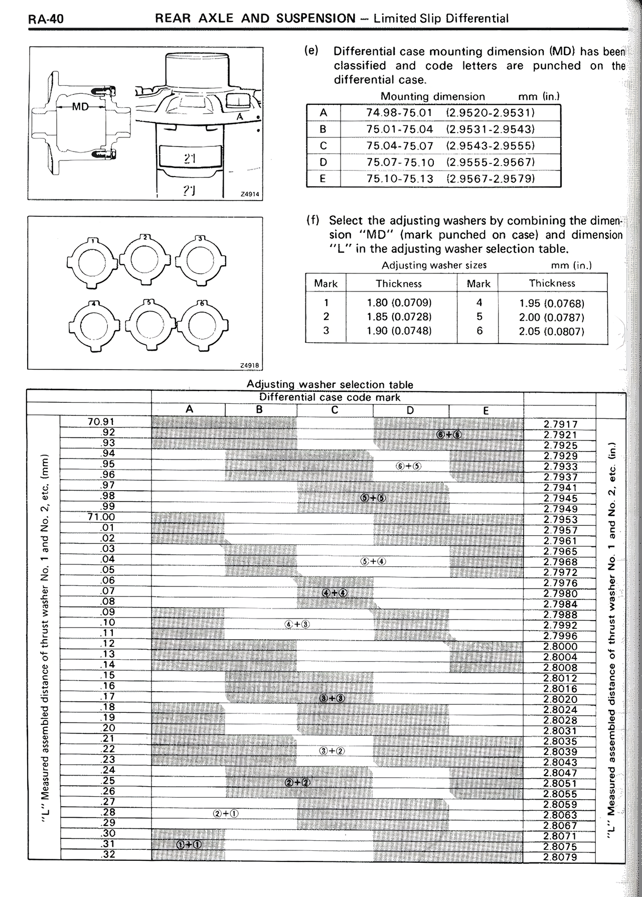 (e) Differential case mounting dimension (MD) has been classified and code letters are punched on the differential case.