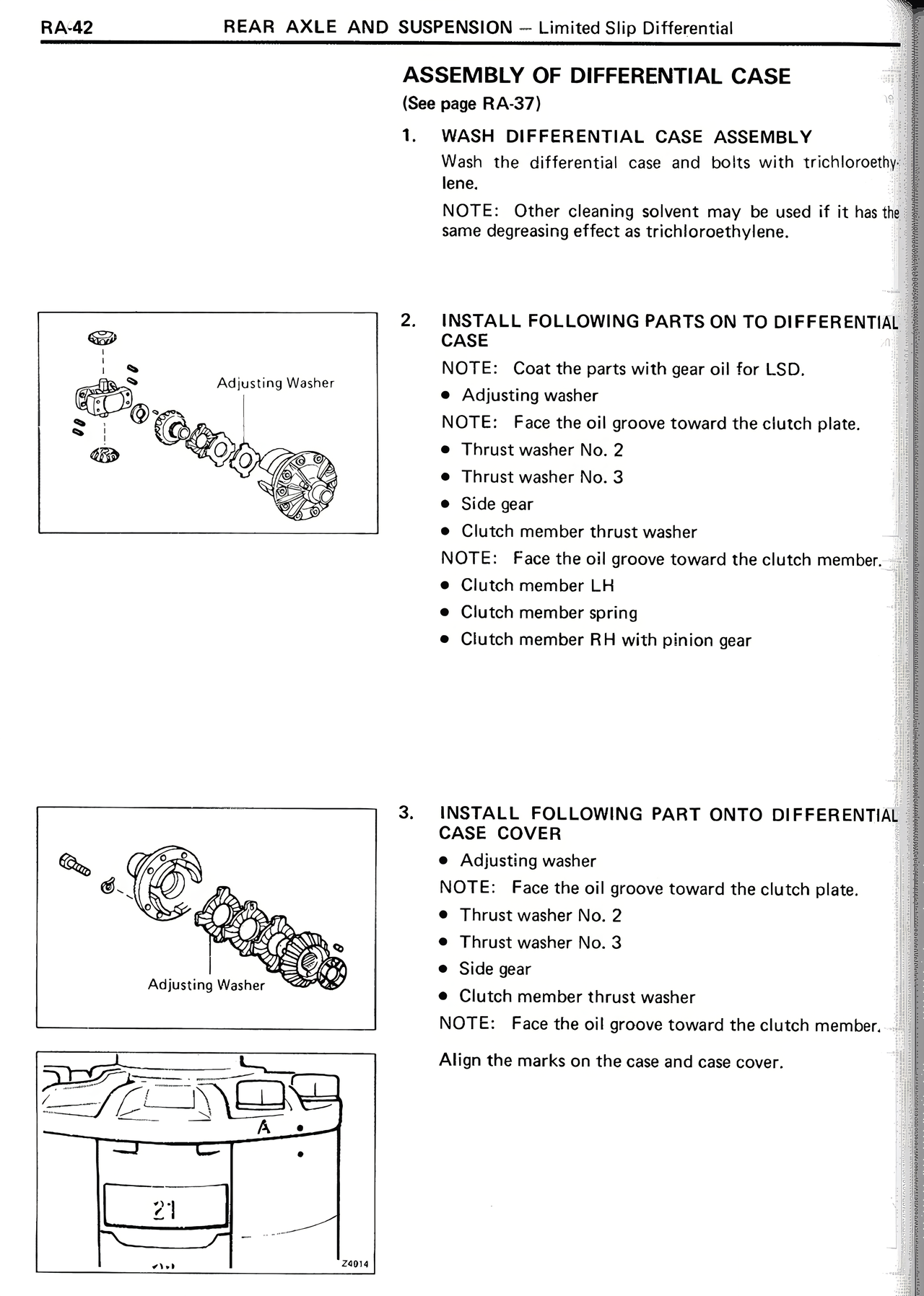 NOTE: Coat the parts with gear oil for LSD.