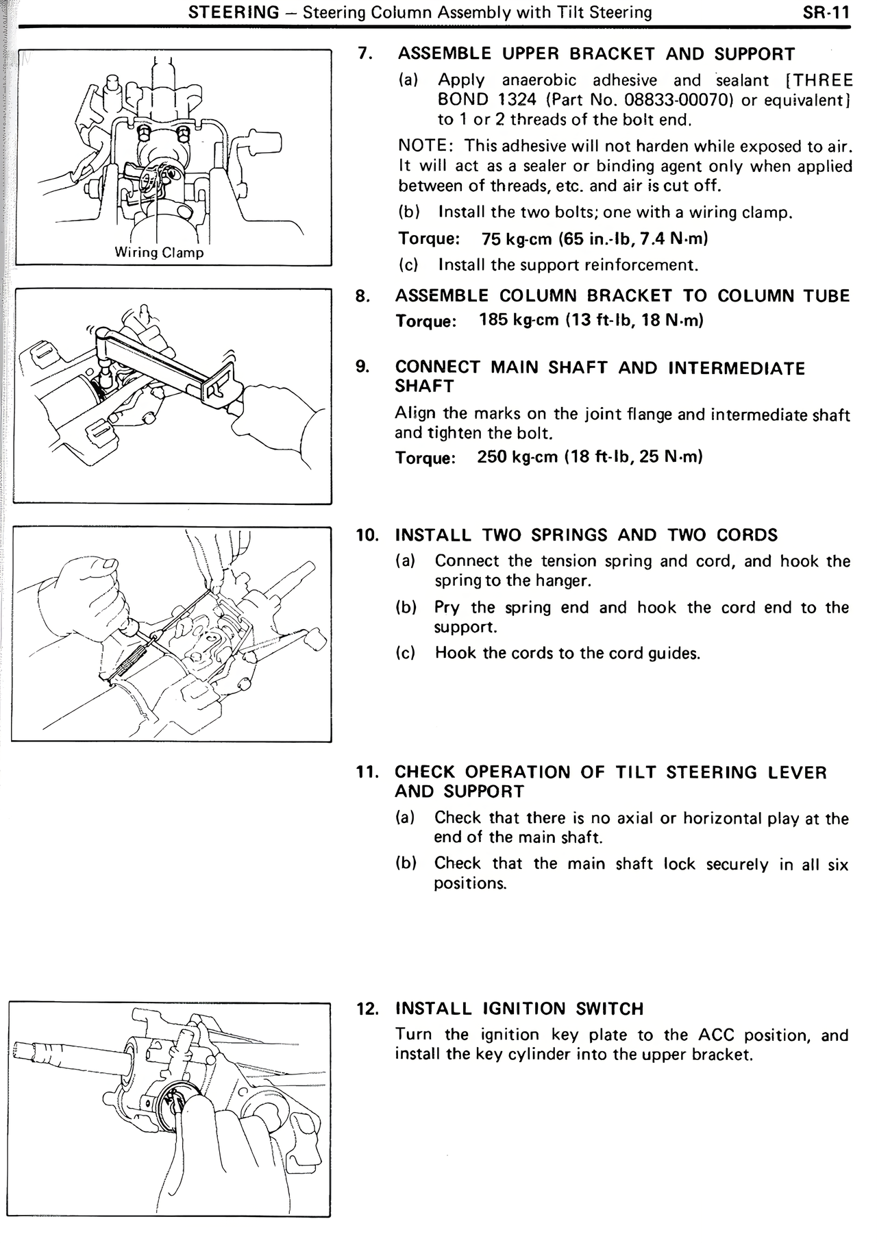 11. CHECK OPERATION OF TILT STEERING LEVER AND SUPPORT