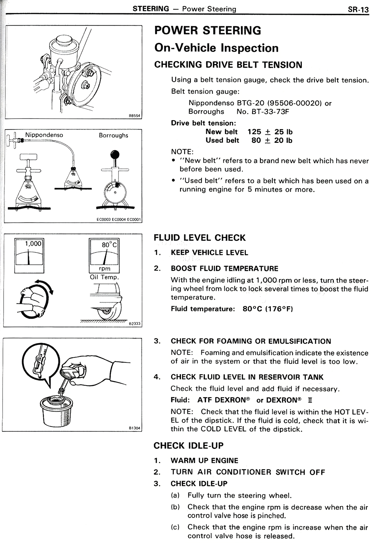 With the engine idling at 1,000 rpm or less, turn the steering wheel from lock to lock several times to boost the fluid temperature.