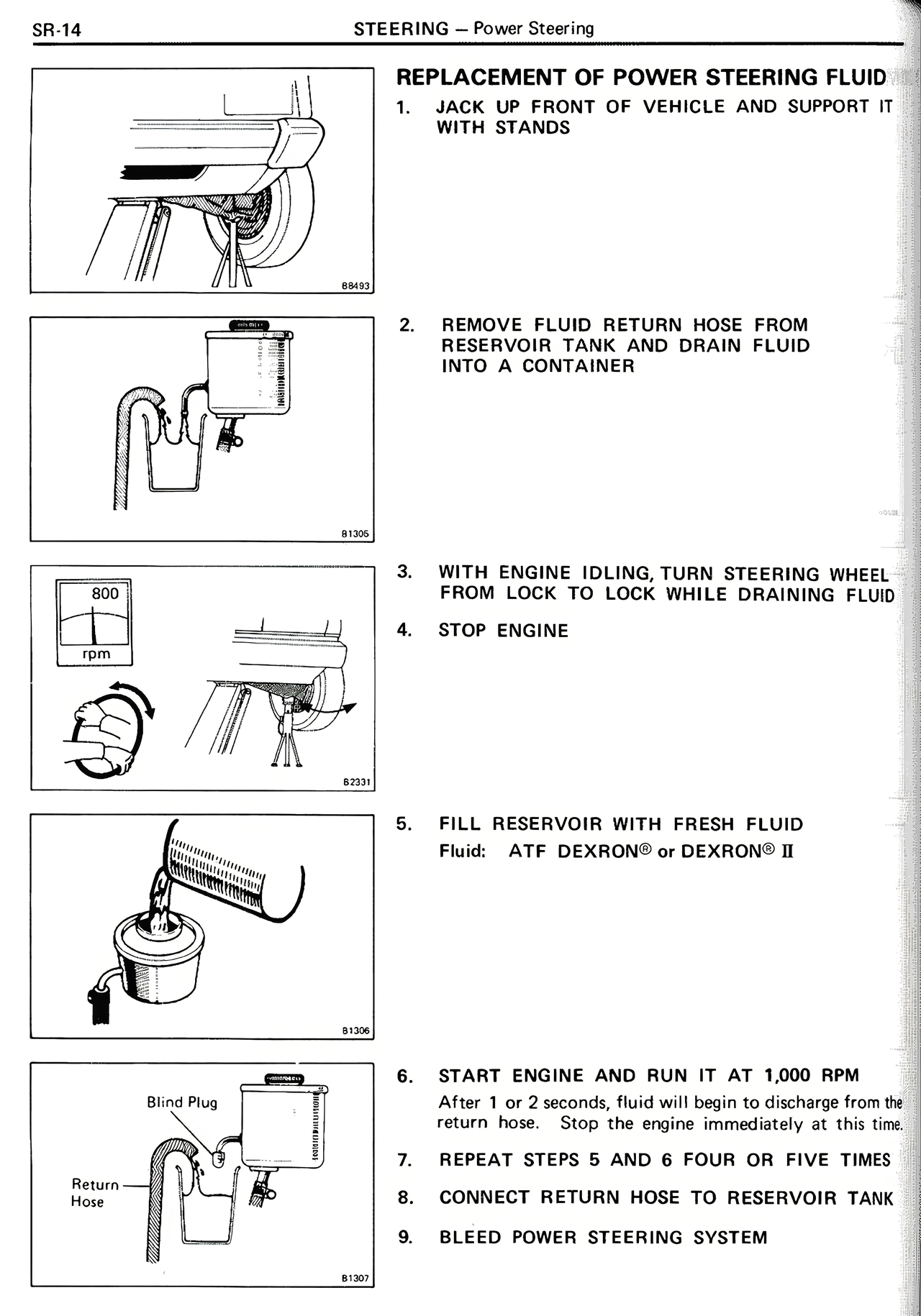 3. WITH ENGINE IDLING, TURN STEERING WHEEL FROM LOCK TO LOCK WHILE DRAINING FLUID