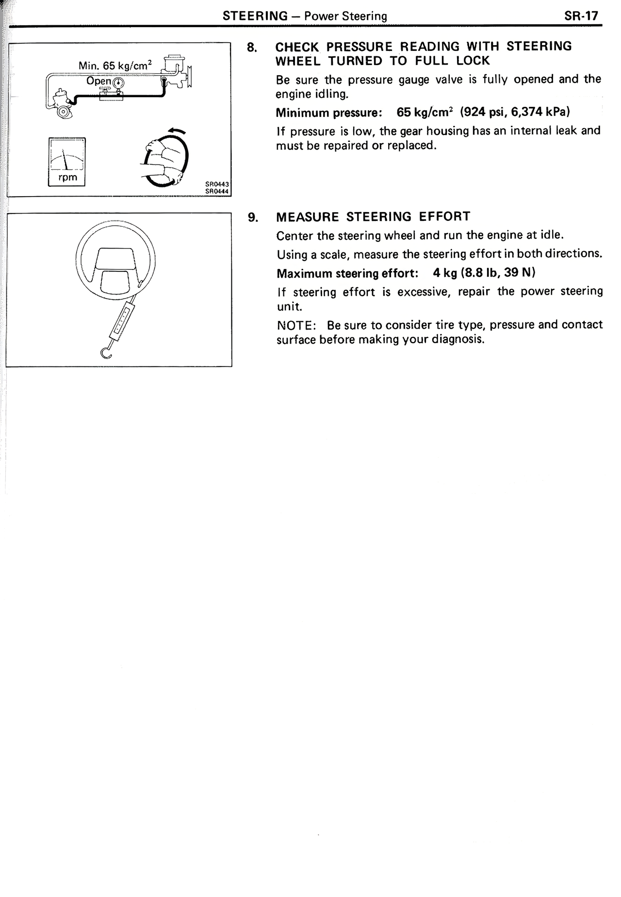 Using a scale, measure the steering effort in both directions.