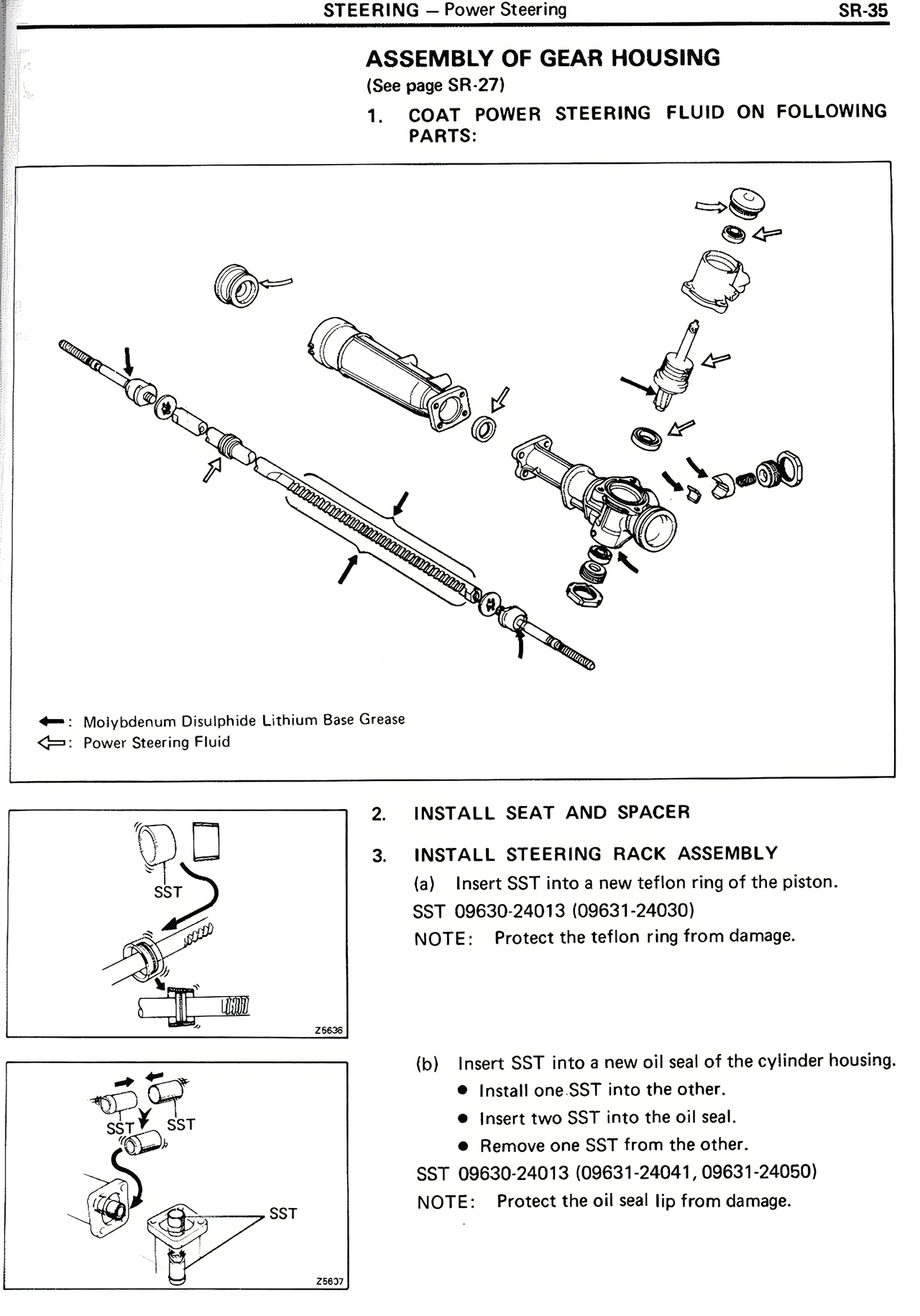 1. COAT POWER STEERING FLUID ON FOLLOWING PARTS: